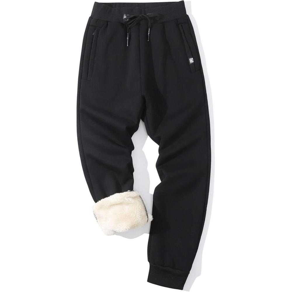 Flygo Men’s Fleece Pants Winter Warm Joggers Pants Active Sherpa Lined Sweatpants(Black)