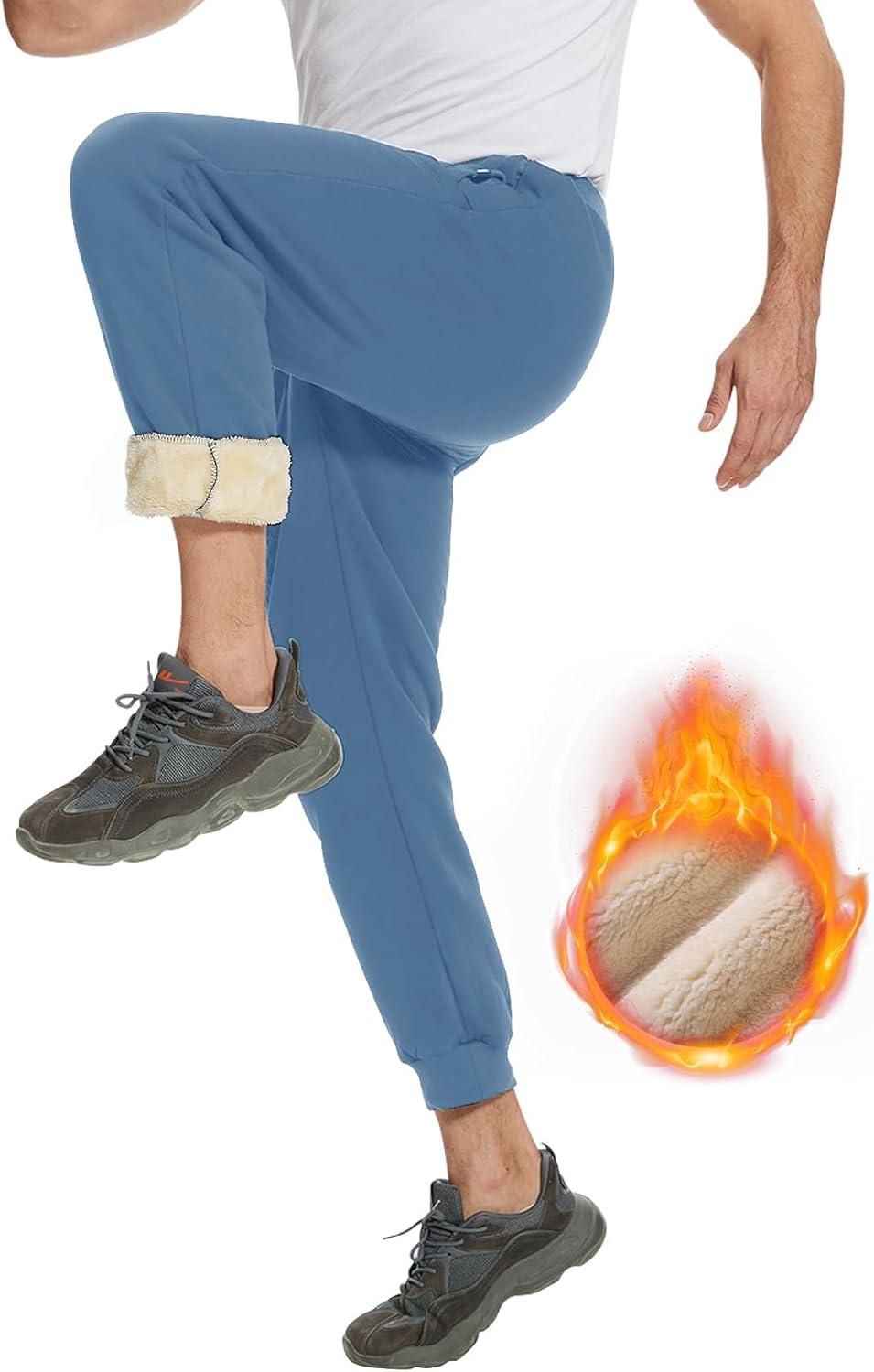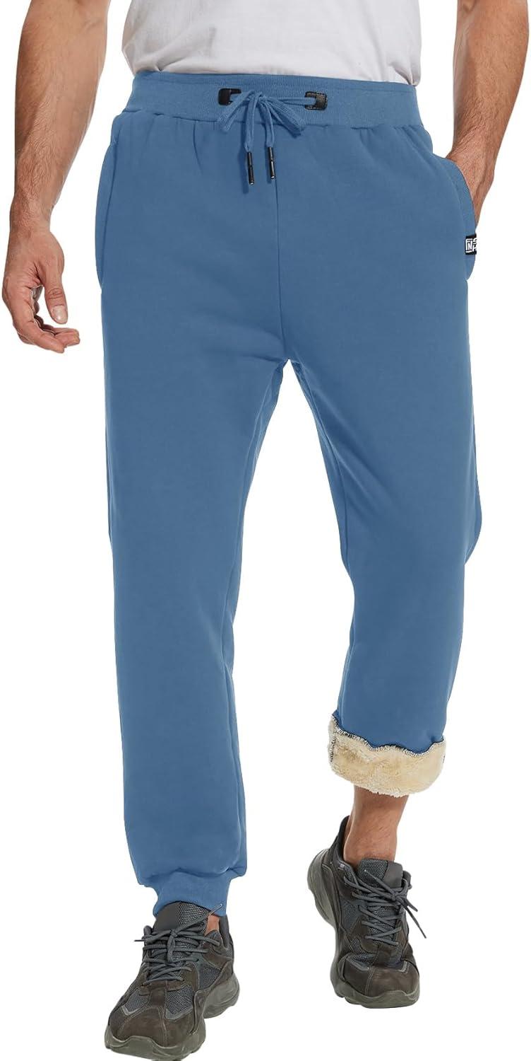 Flygo Men’s Fleece Pants Winter Warm Joggers Pants Active Sherpa Lined Sweatpants(Blue Grey)
