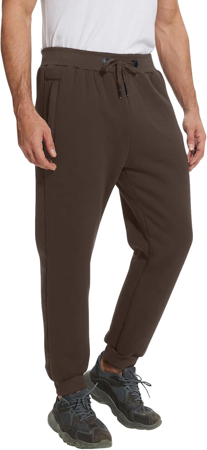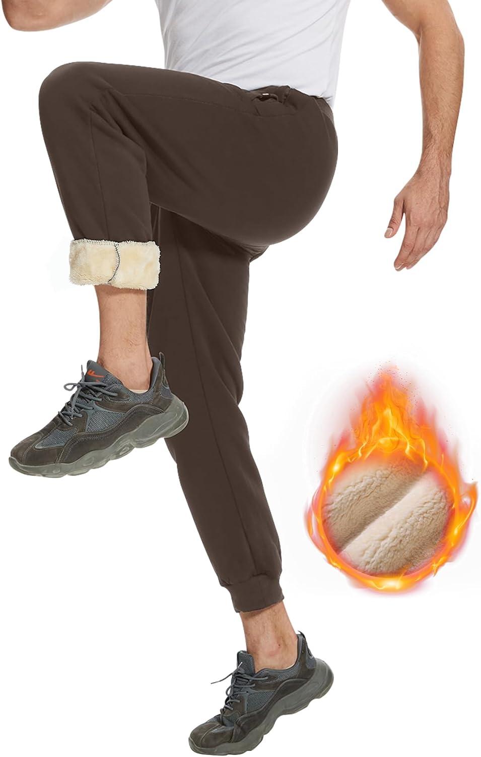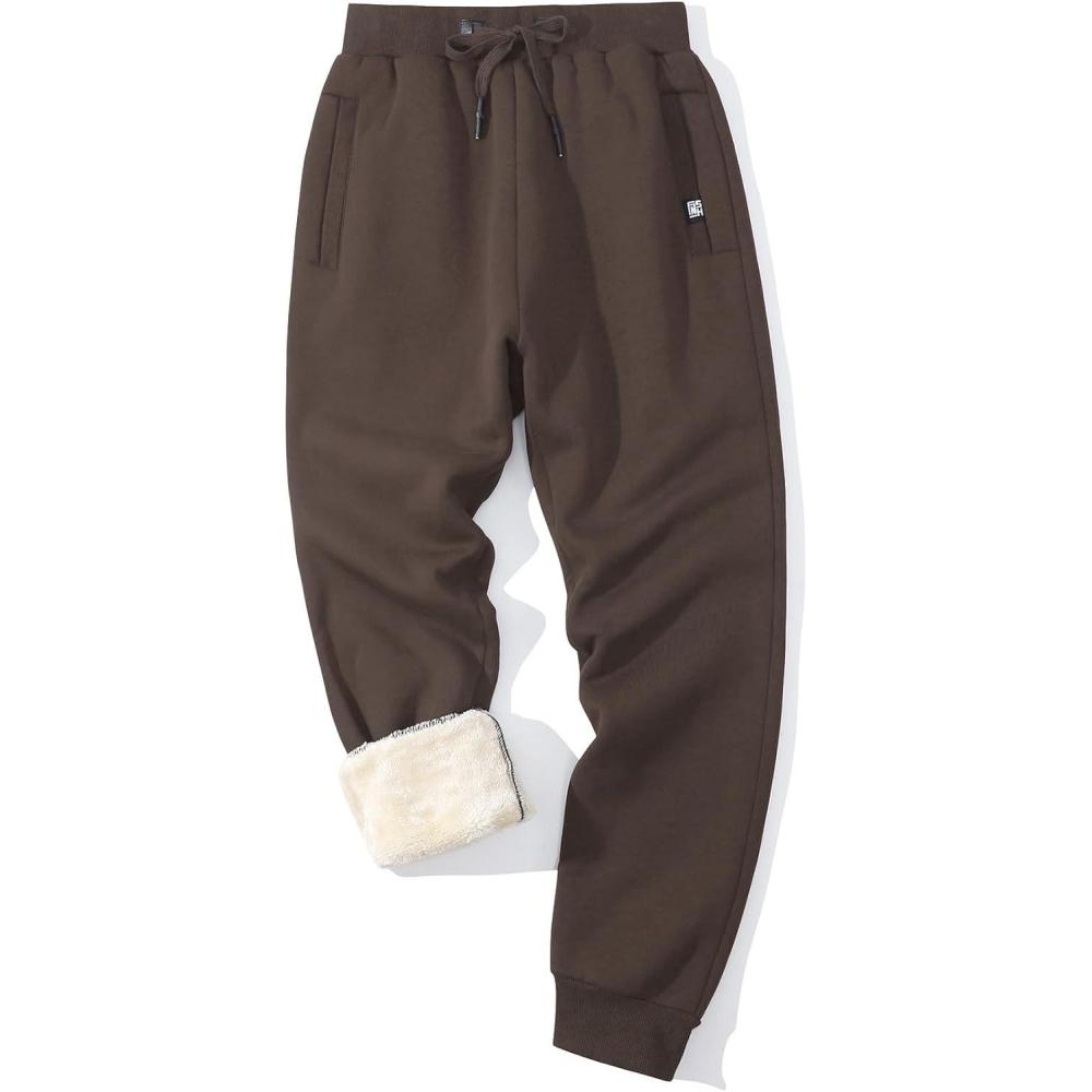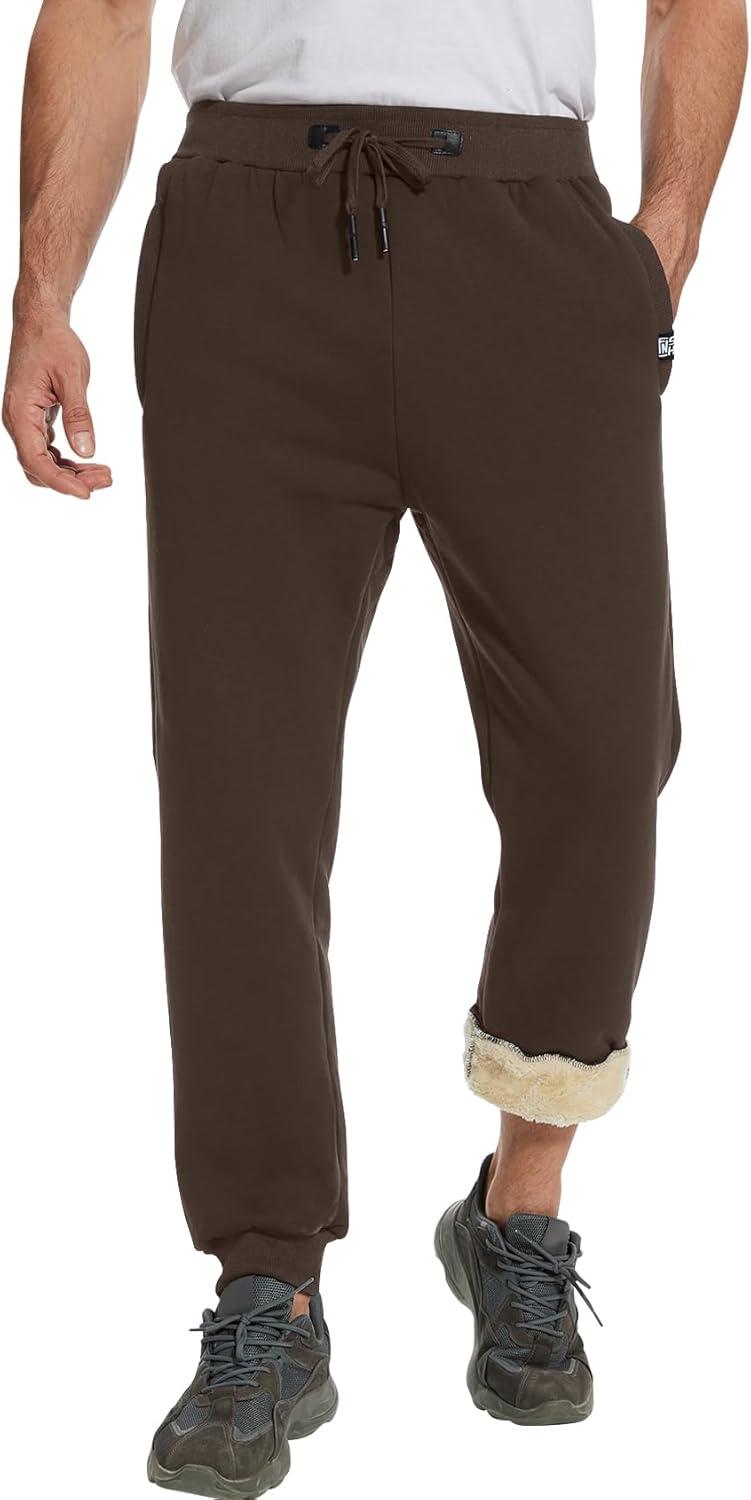 Flygo Men’s Fleece Pants Winter Warm Joggers Pants Active Sherpa Lined Sweatpants(Brown)