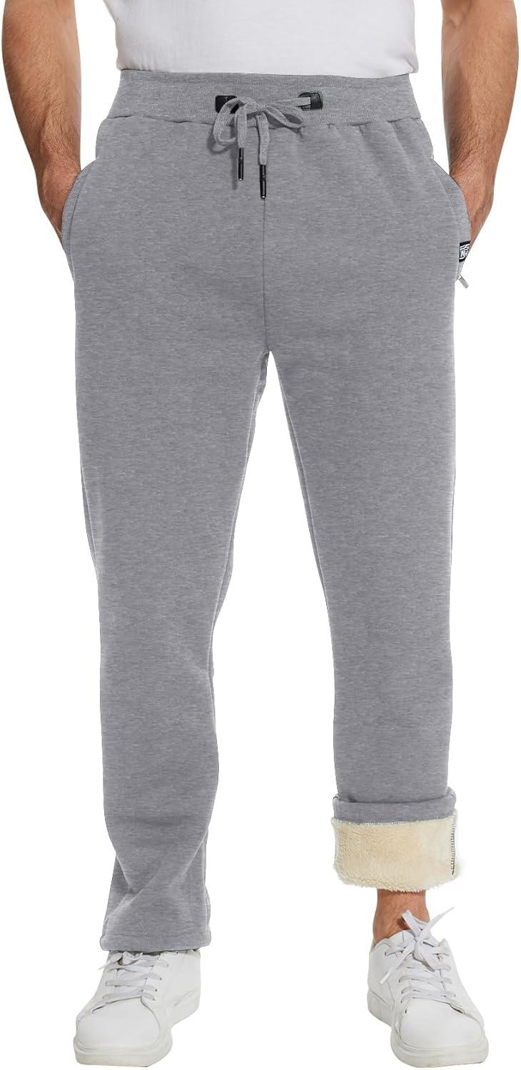 Flygo Men’s Fleece Pants Winter Warm Joggers Pants Active Sherpa Lined Sweatpants(Grey (Straight))