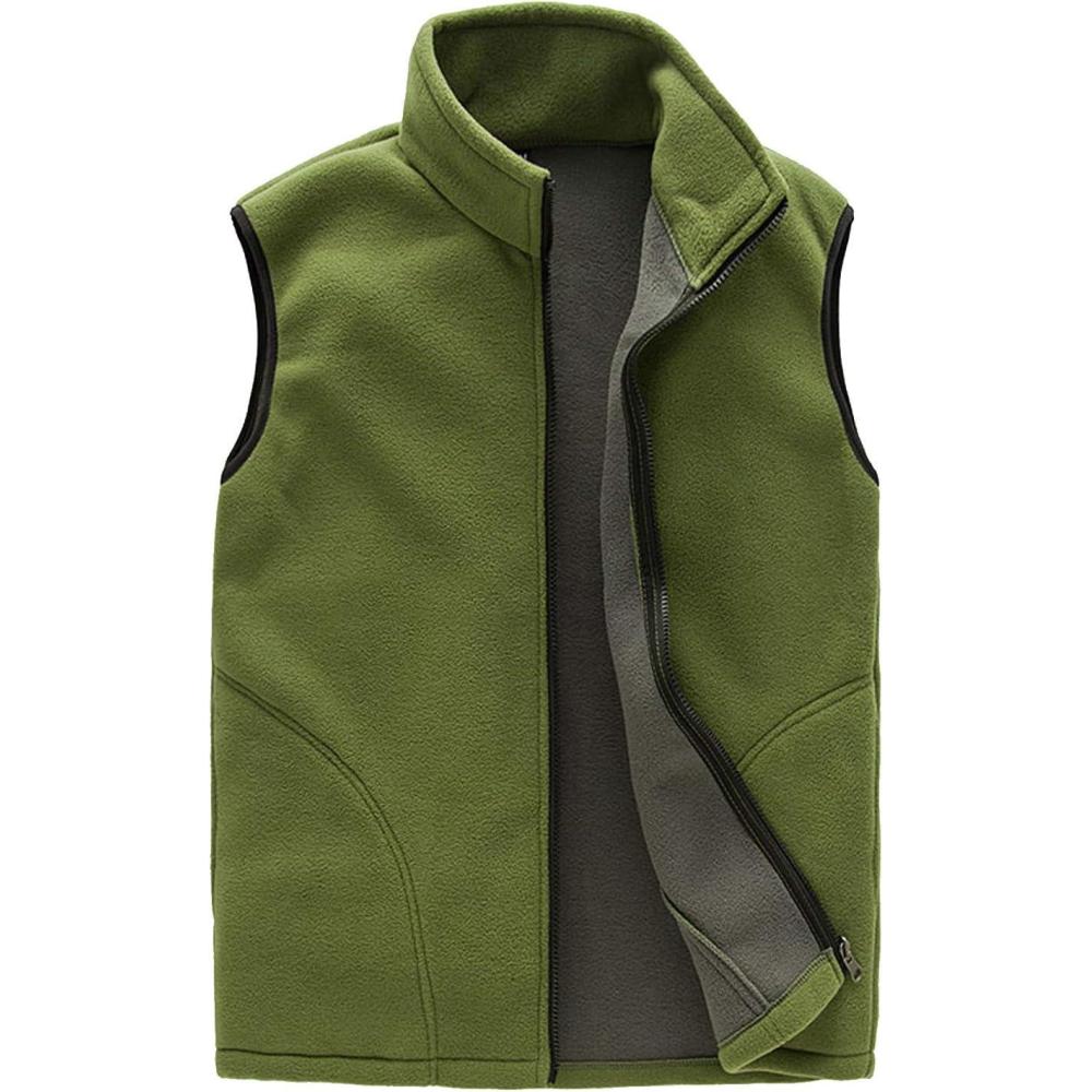Flygo Men’s Full Zip Up Soft Lightweight Utility Outdoor Mountain Fleece Vest(Dark Army Green)