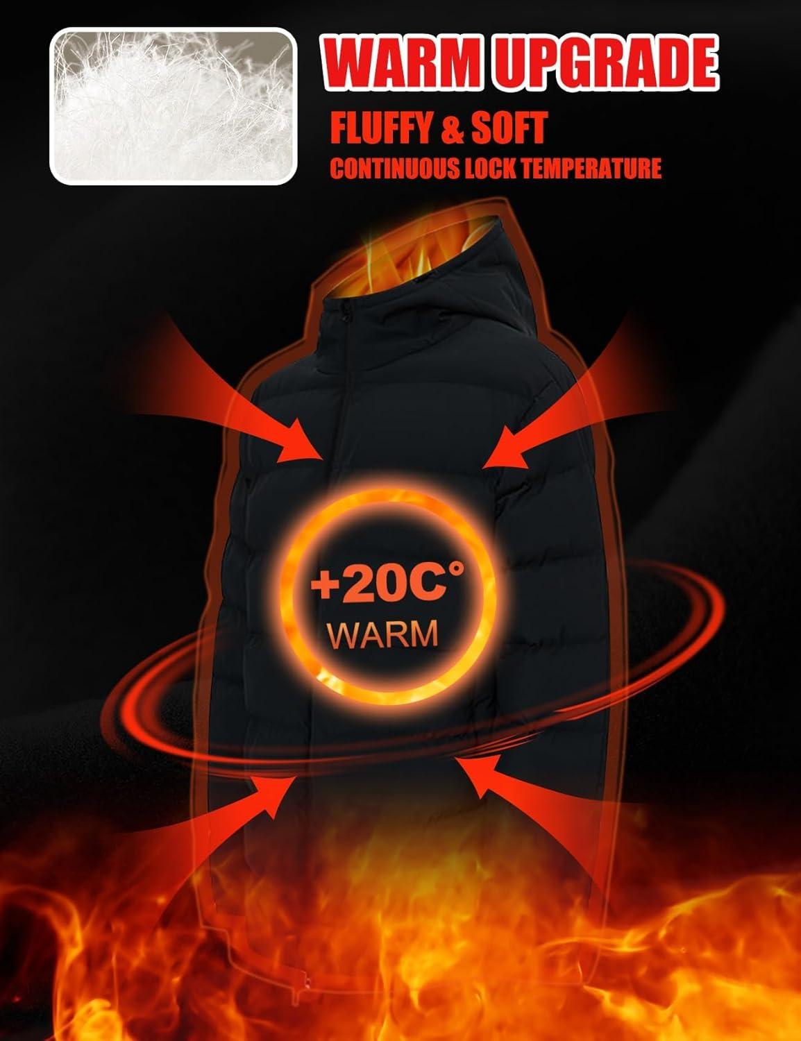 Flygo Mens Hooded Puffer Jacket Insulated Winter Waterproof Warm Coat Zipper Down Quilted Jackets(Black)