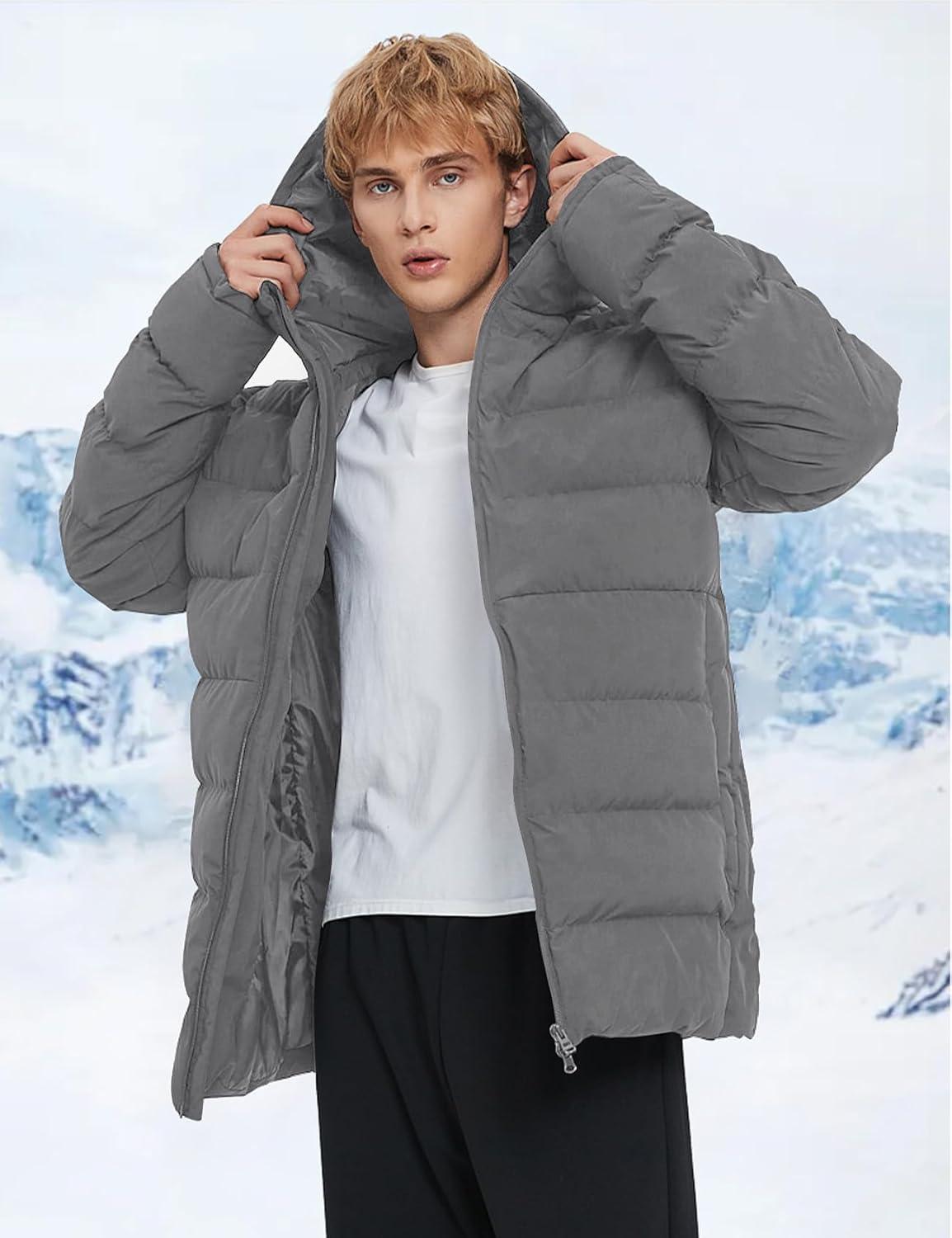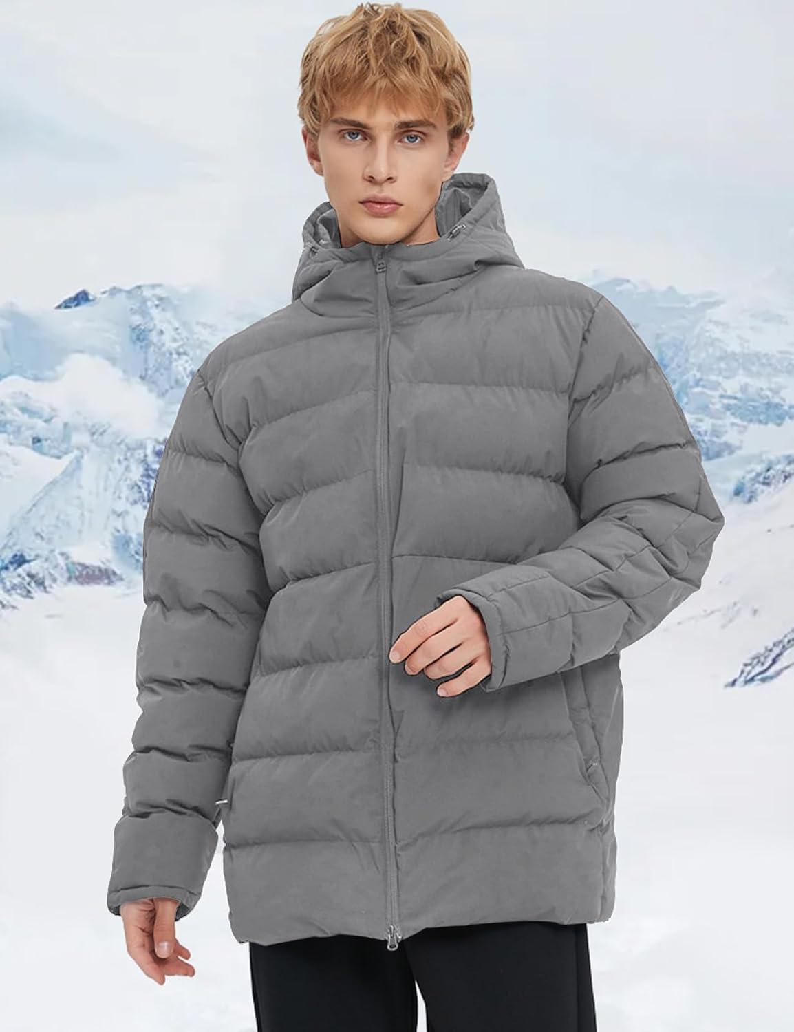 Flygo Mens Hooded Puffer Jacket Insulated Winter Waterproof Warm Coat Zipper Down Quilted Jackets(Darkgrey)