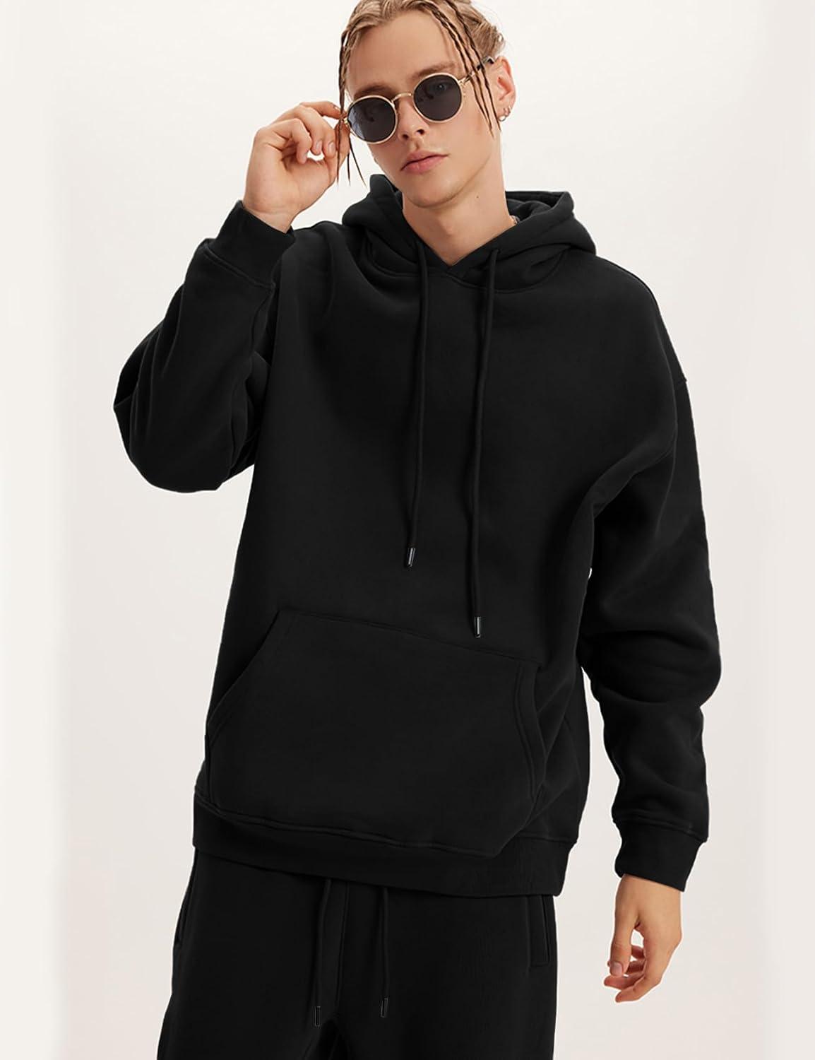 Flygo Mens Hoodie Oversized Fleece Pullover Fashion Hoodies Casual Active Long Sleeve Hooded Sweatshirt(Black)