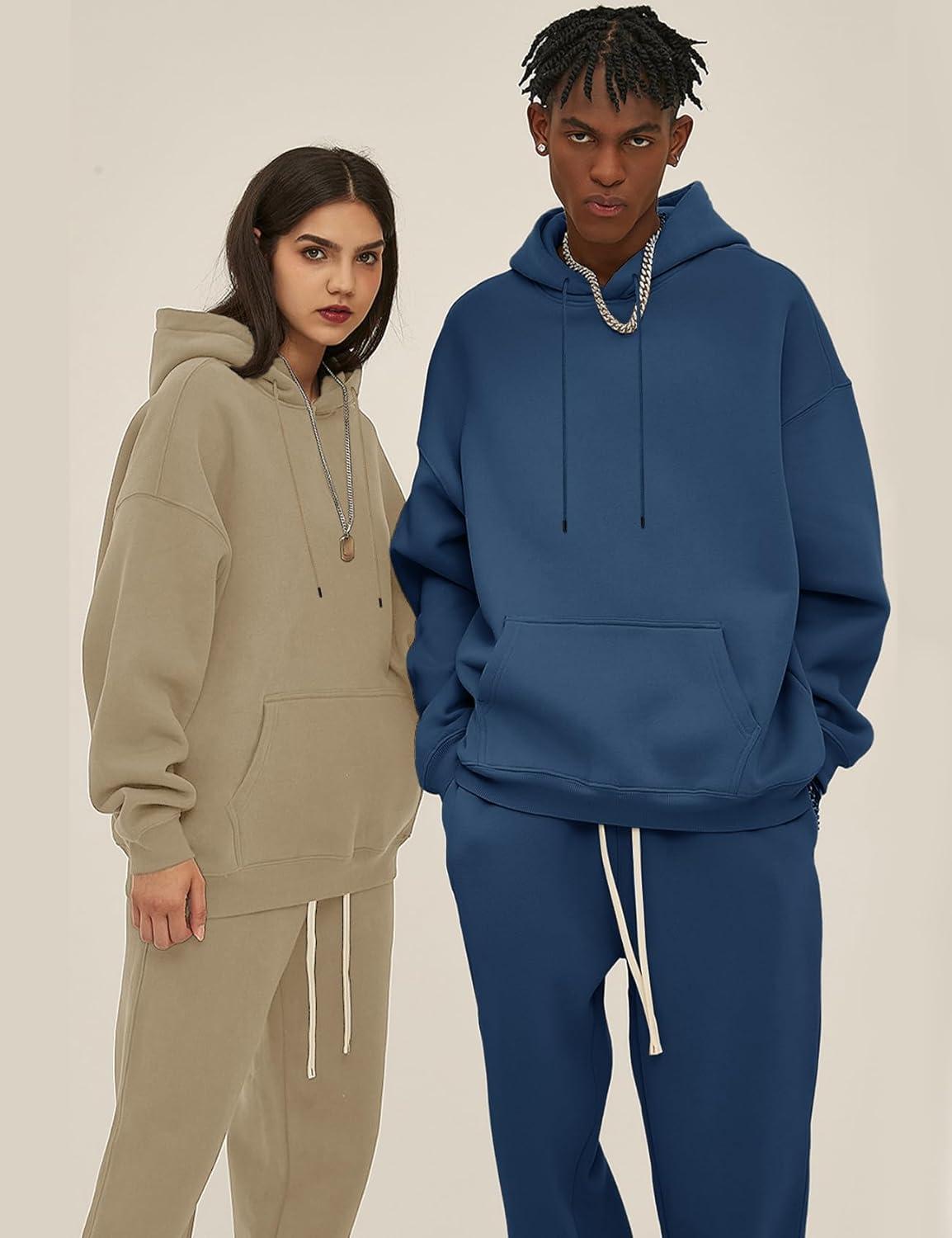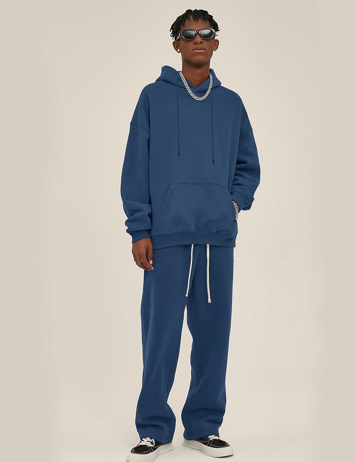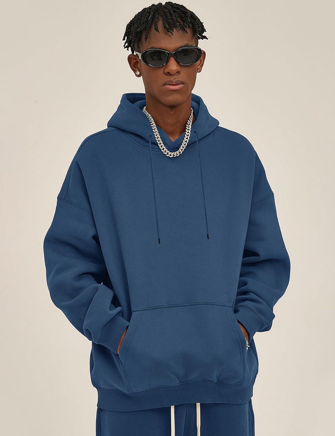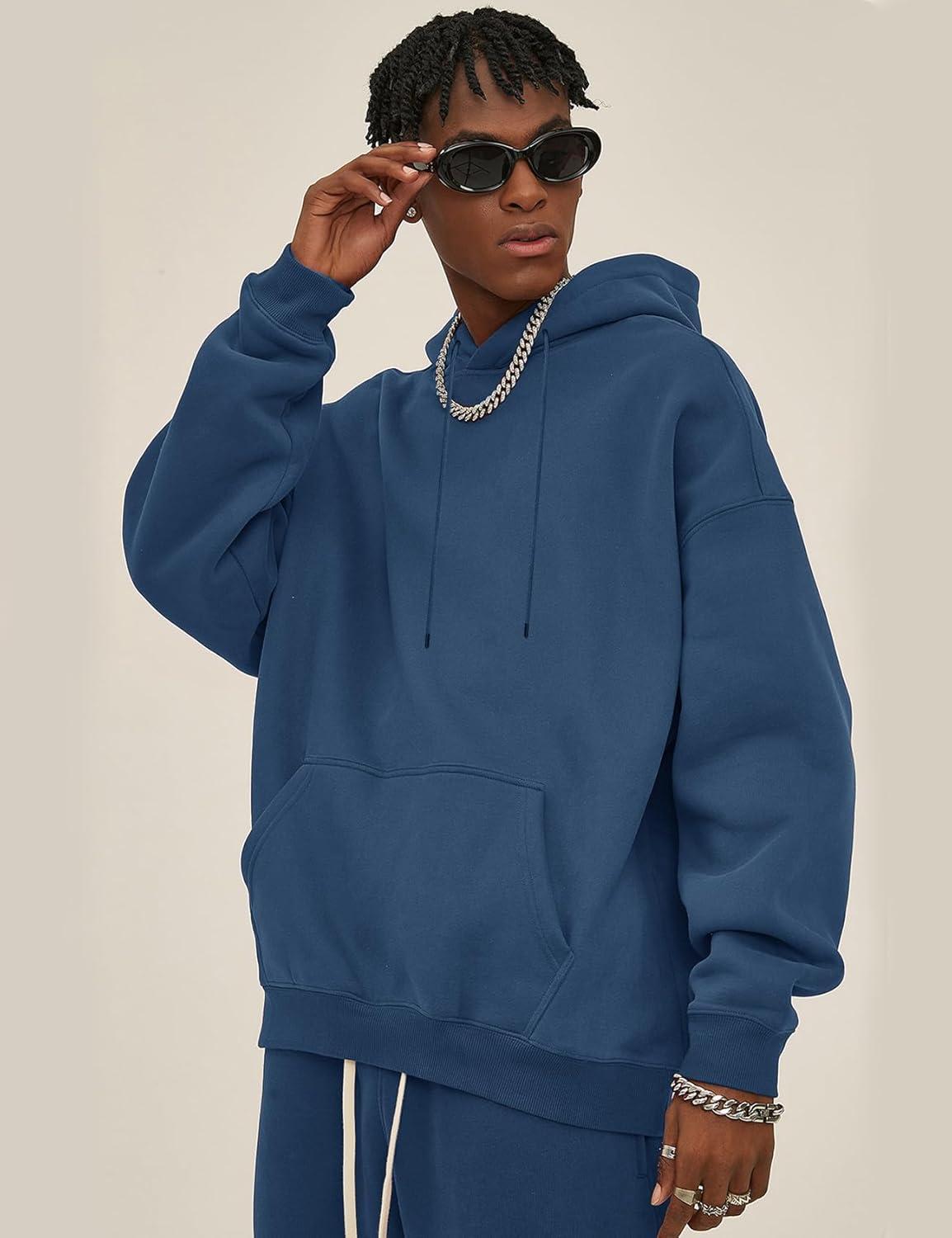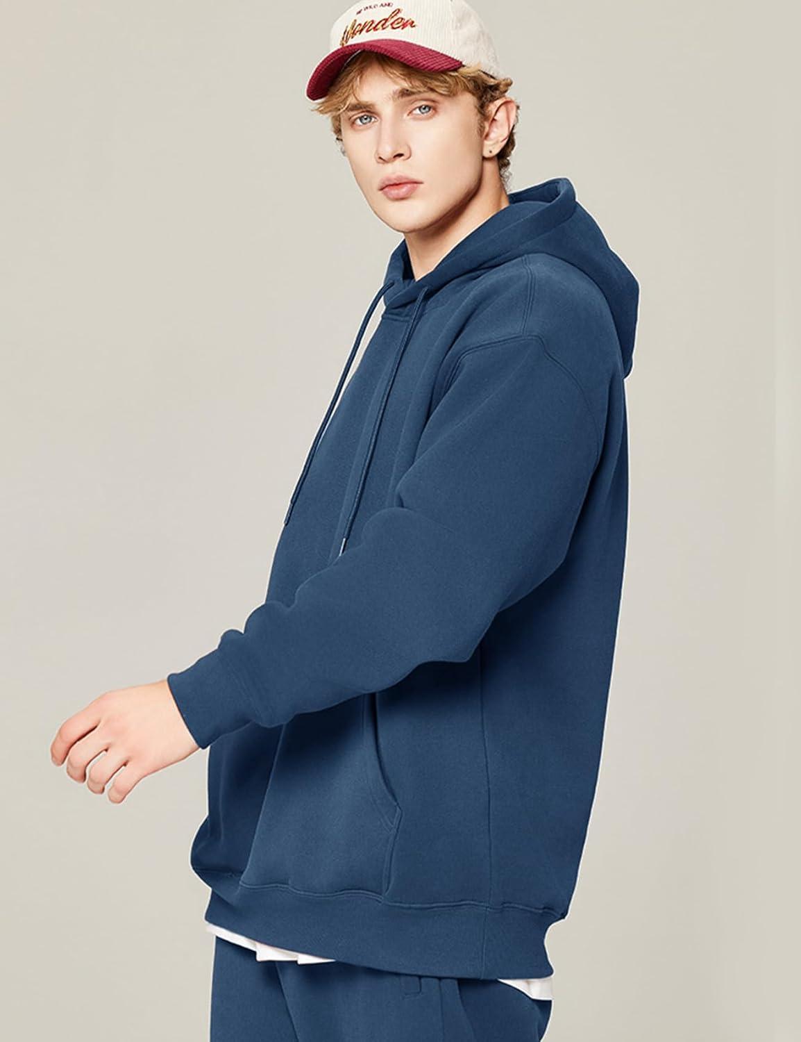 Flygo Mens Hoodie Oversized Fleece Pullover Fashion Hoodies Casual Active Long Sleeve Hooded Sweatshirt(Blue Grey)