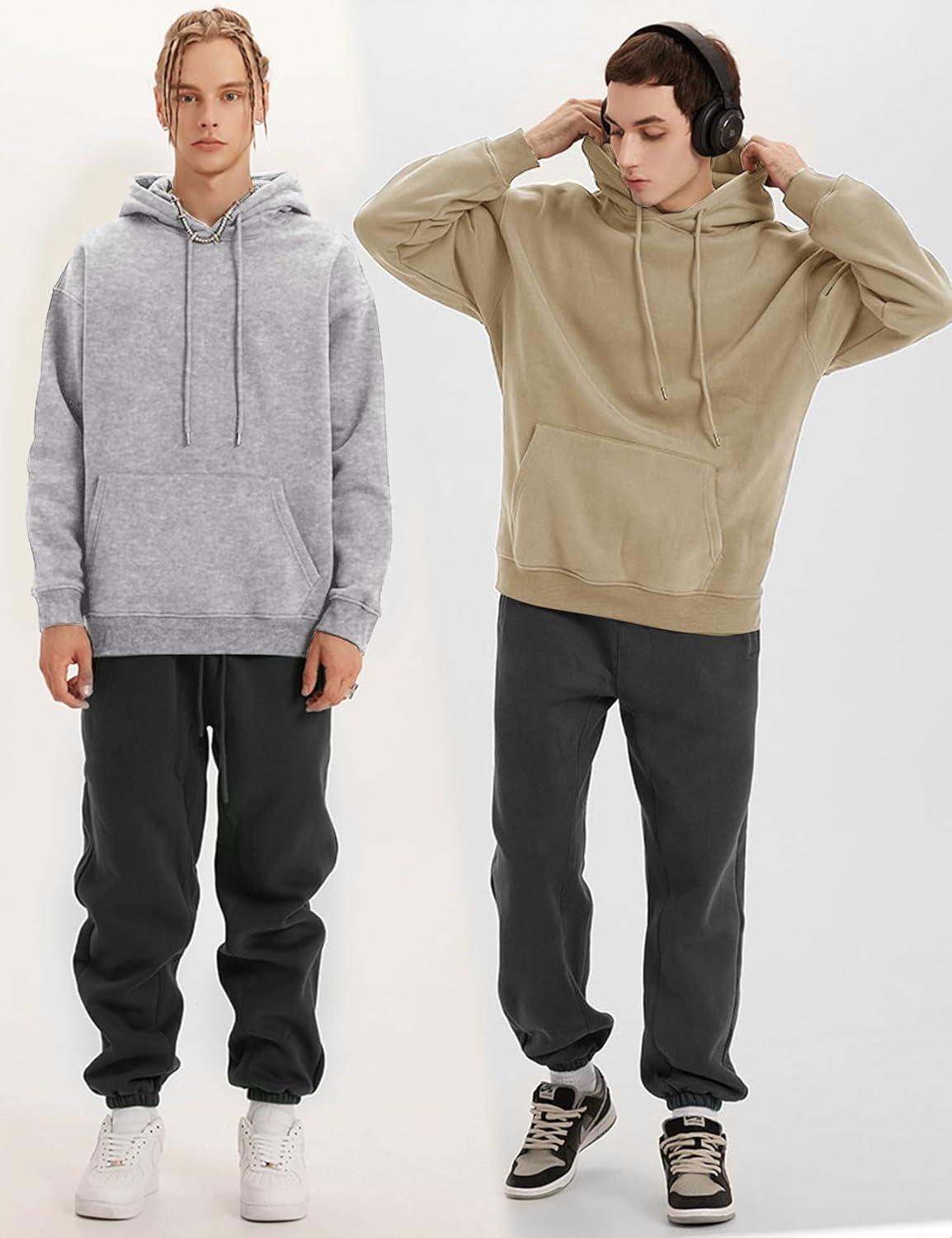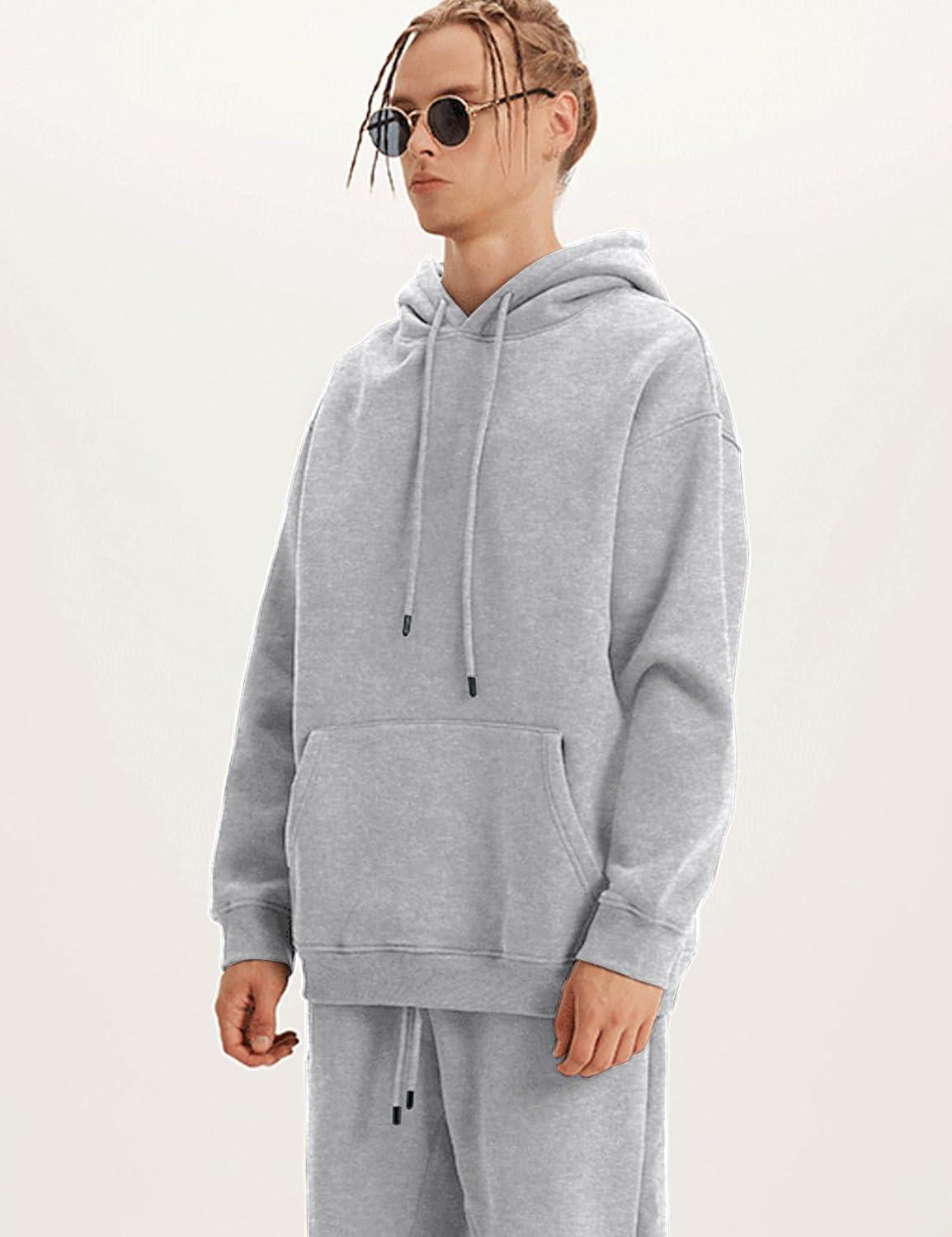 Flygo Mens Hoodie Oversized Fleece Pullover Fashion Hoodies Casual Active Long Sleeve Hooded Sweatshirt(Grey Heather)