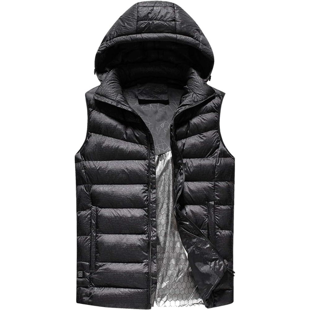 Flygo Men’s Lightweight USB Electric Heated Vest Removable Hooded Body Warmer Vest(Black)
