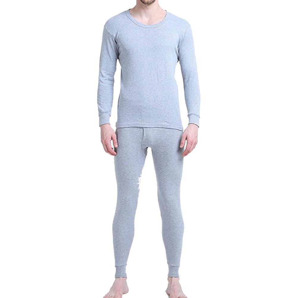 Flygo Men’s Long Thermal Underwear Set O-Neck Top and Bottom Base Layer(Light Grey)