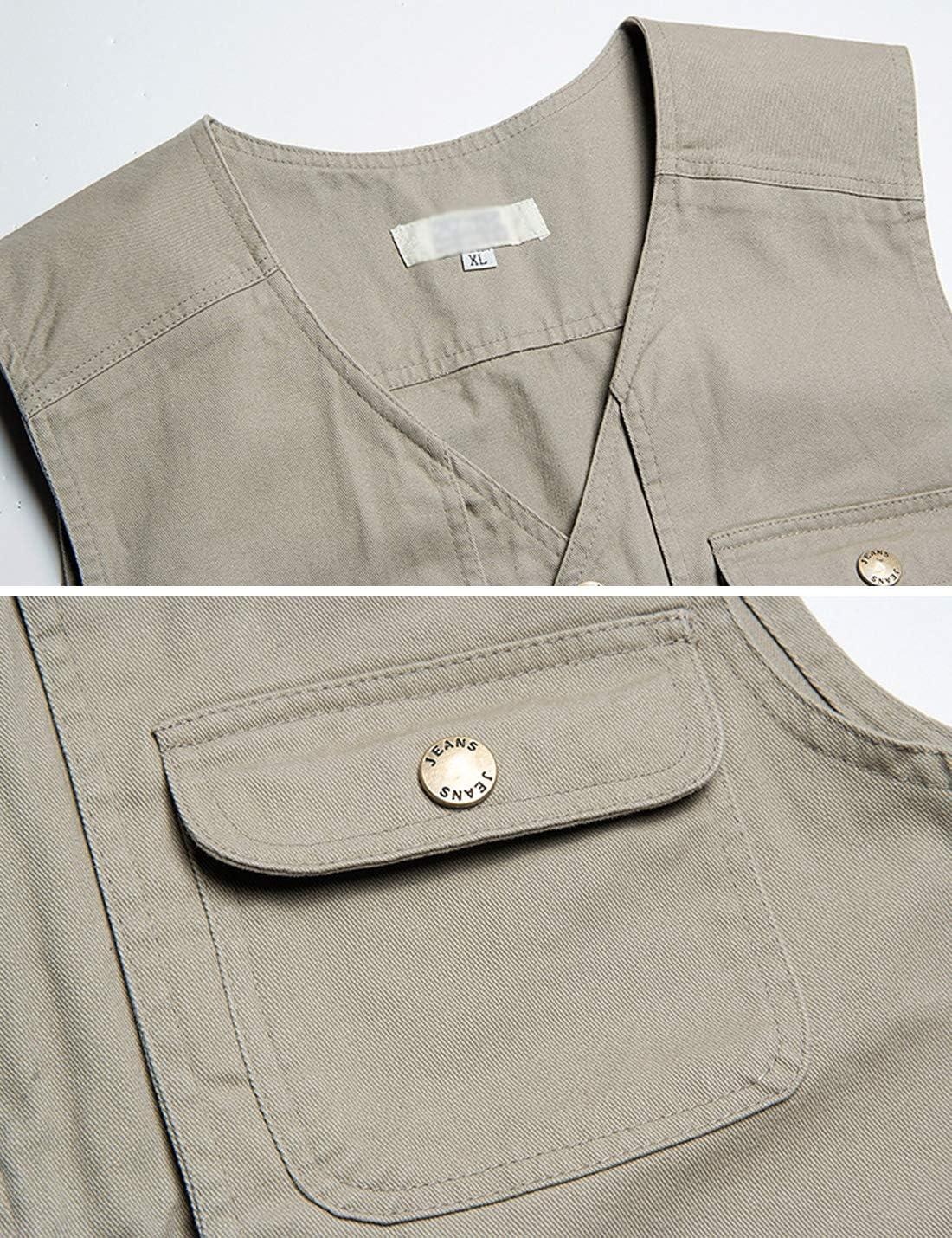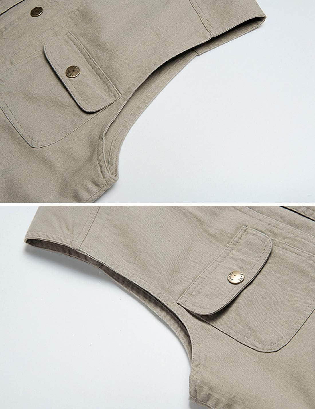 Flygo Men’s Multi-Pockets Cotton Lightweight Safari Fishing Photo Outdoor Work Utility Vest(Khaki)