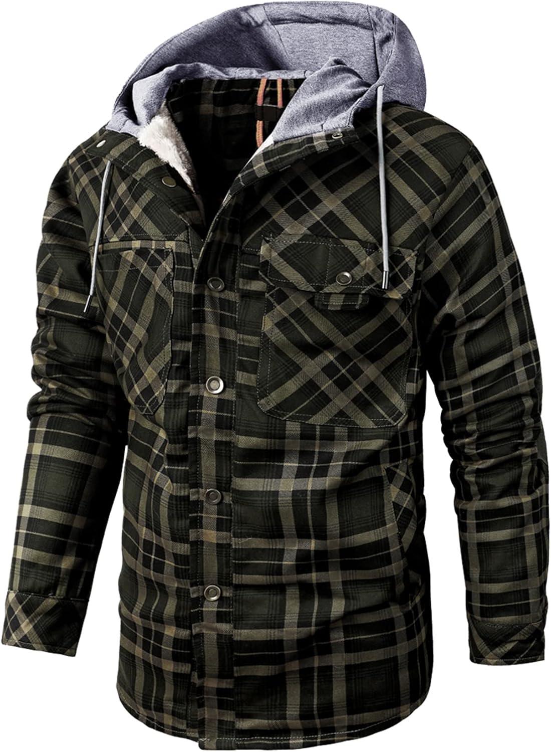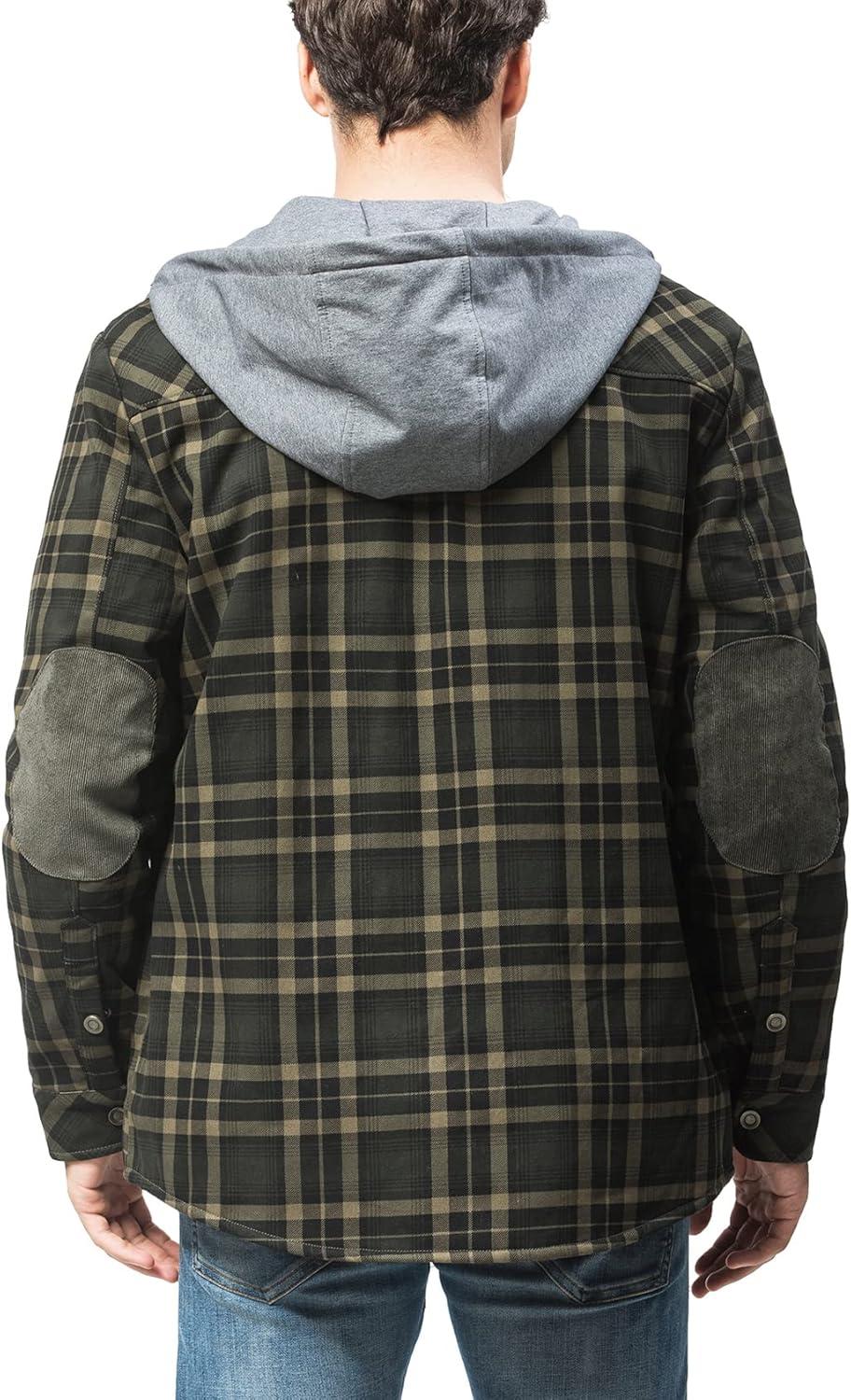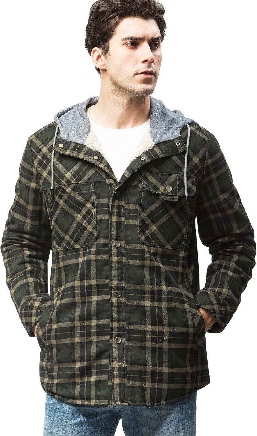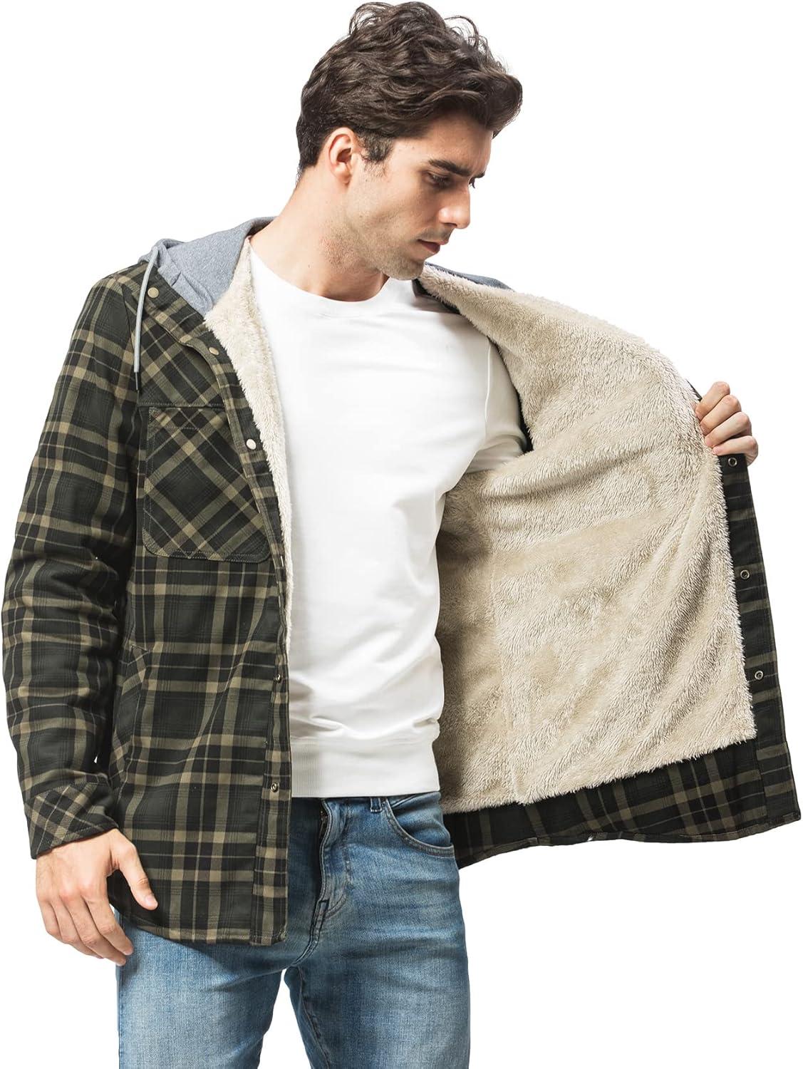 Flygo Men’s Outdoor Casual Fleece Sherpa Lined Flannel Hooded Plaid Shirt Jacket(GreenPlaid-XXL)