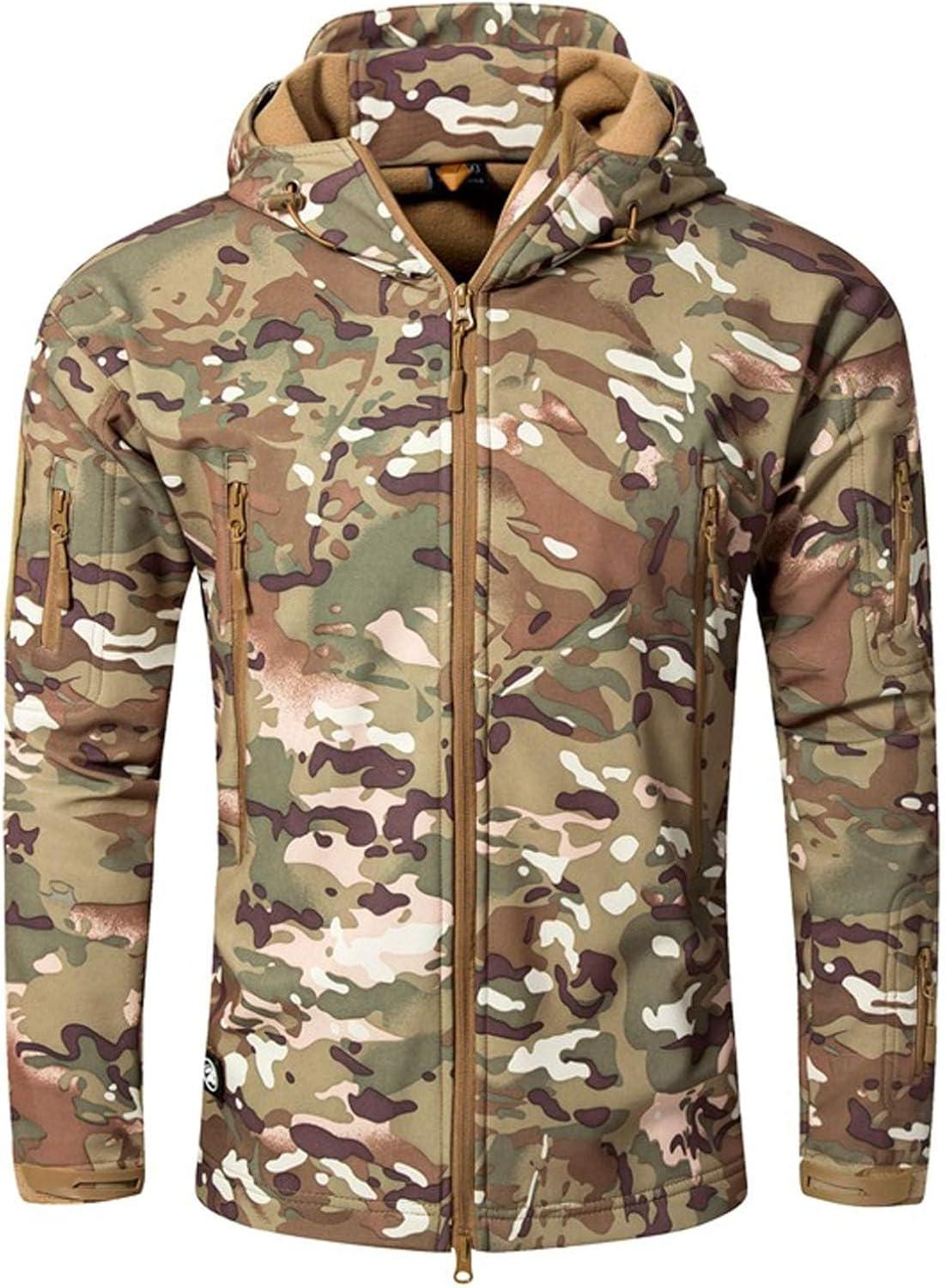 Flygo Men’s Outdoor Military Hooded Tactical Fleece Softshell Jacket Coat(Cp)
