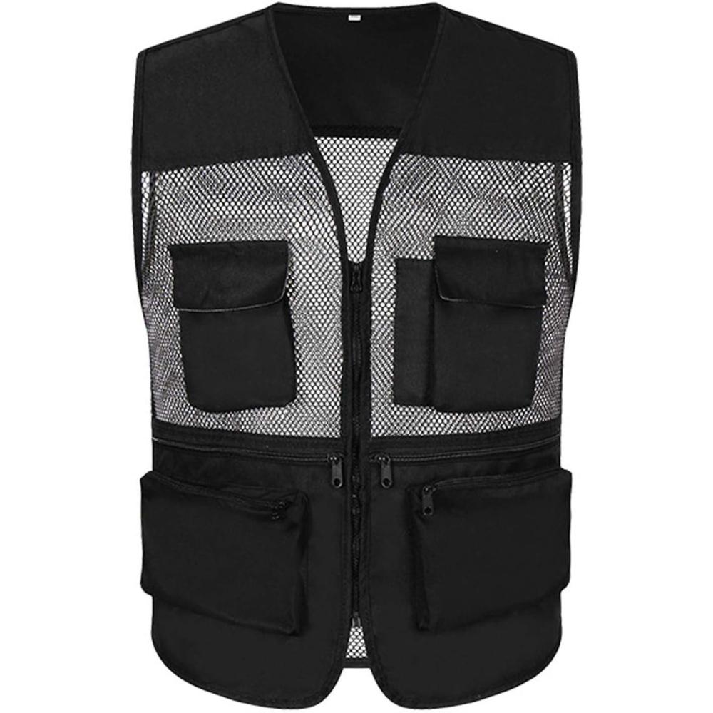 Flygo Men’s Outdoor Summer Work Travel Safari Fishing Photo Vest with Pockets(Black)