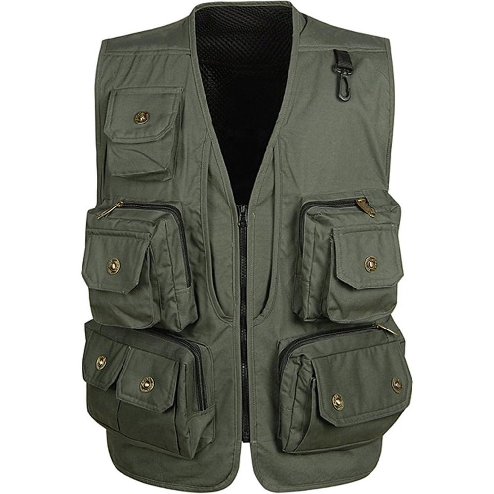 Flygo Men’s Outdoor Work Utility Fishing Hunting Photography Travel Vest with Multiple Pockets (Small, Army Green)
