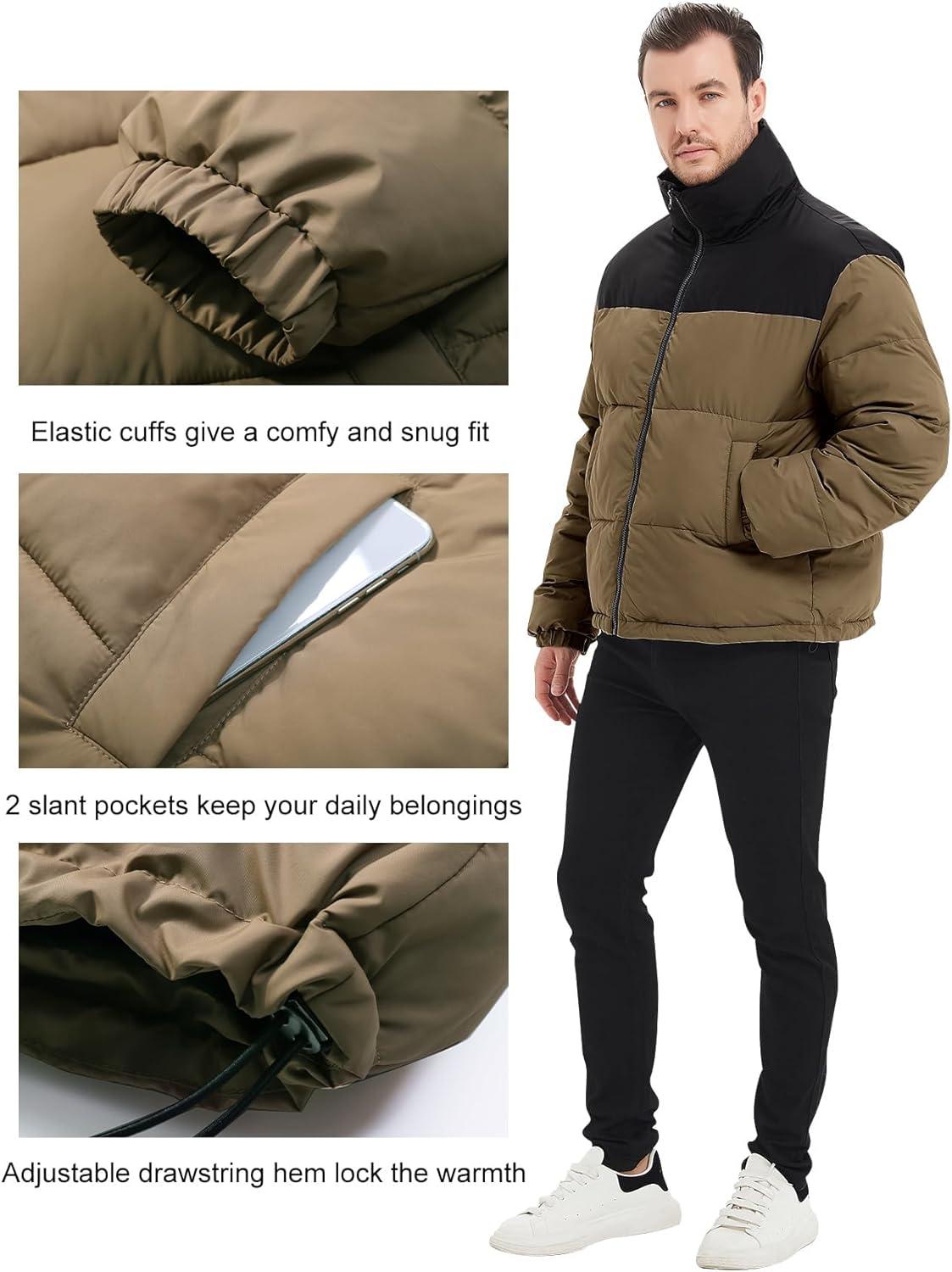Flygo Mens Puffer Jacket Winter Coats Water Resistant Long Sleeve Zip Up Lightweight Quilted Down Jackets(Dark Khaki)
