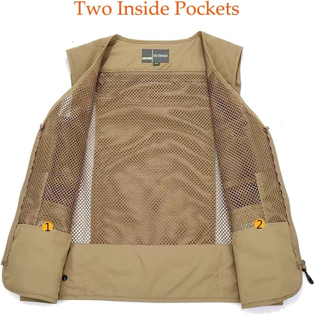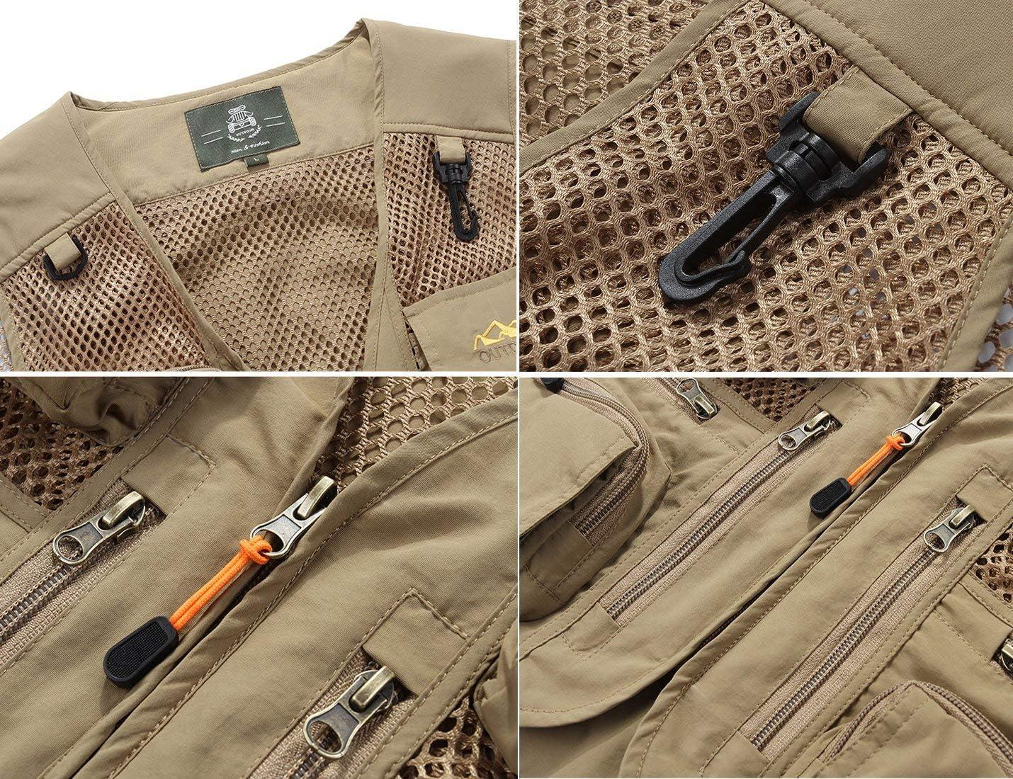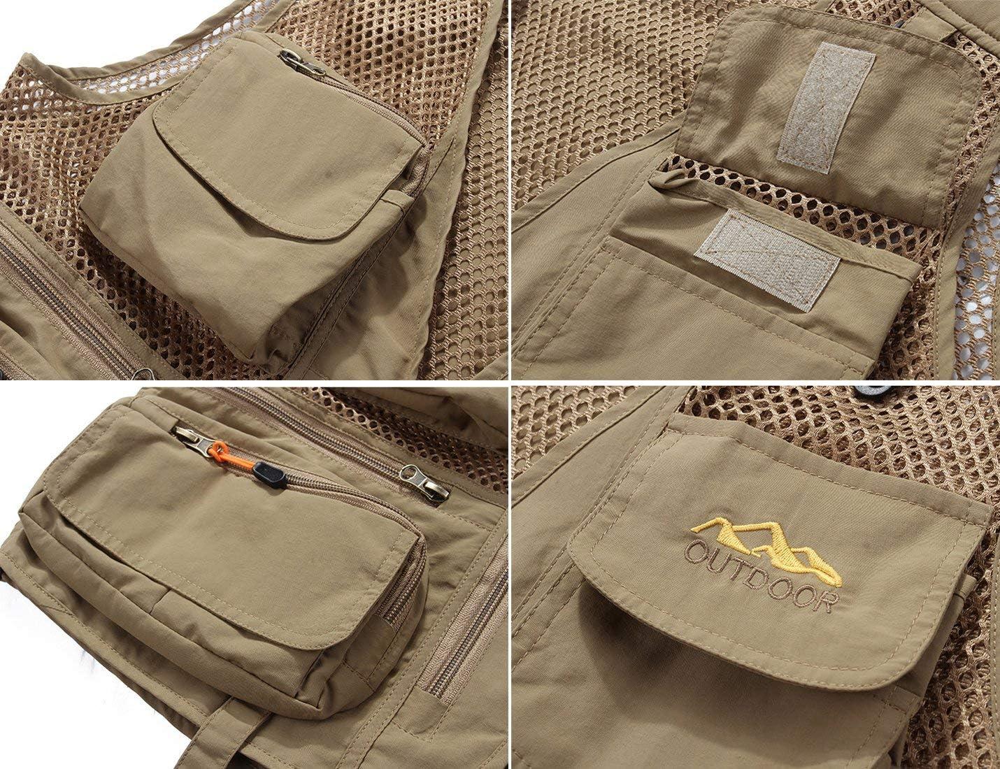 Flygo Men’s Quick Dry Fishing Hunting Photograghy Journalist Outdoor Mesh Vest Jacket(Khaki)