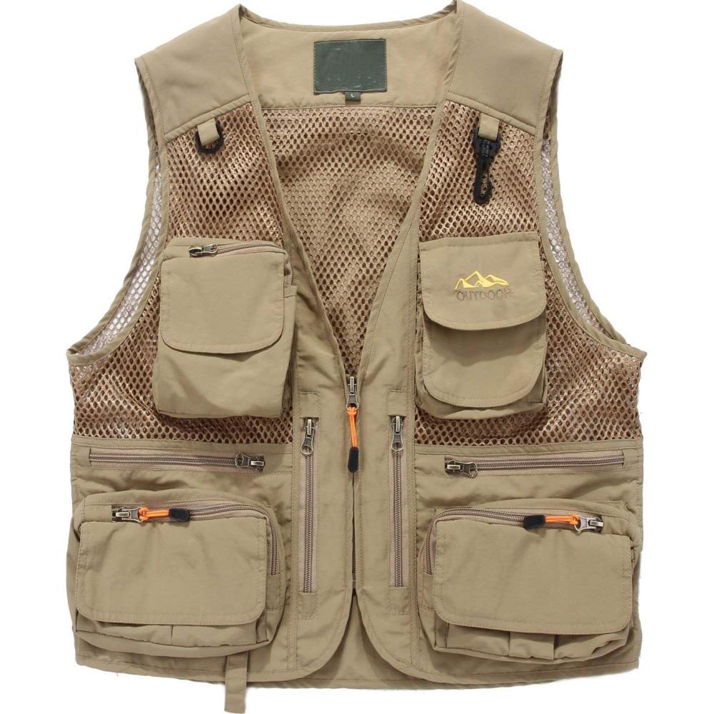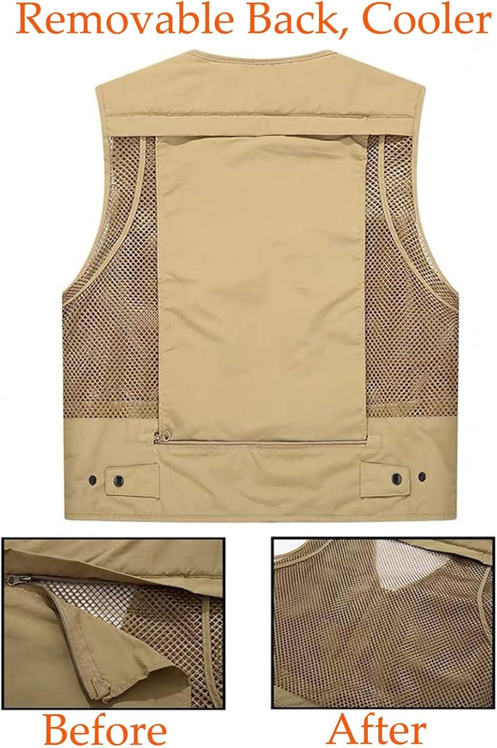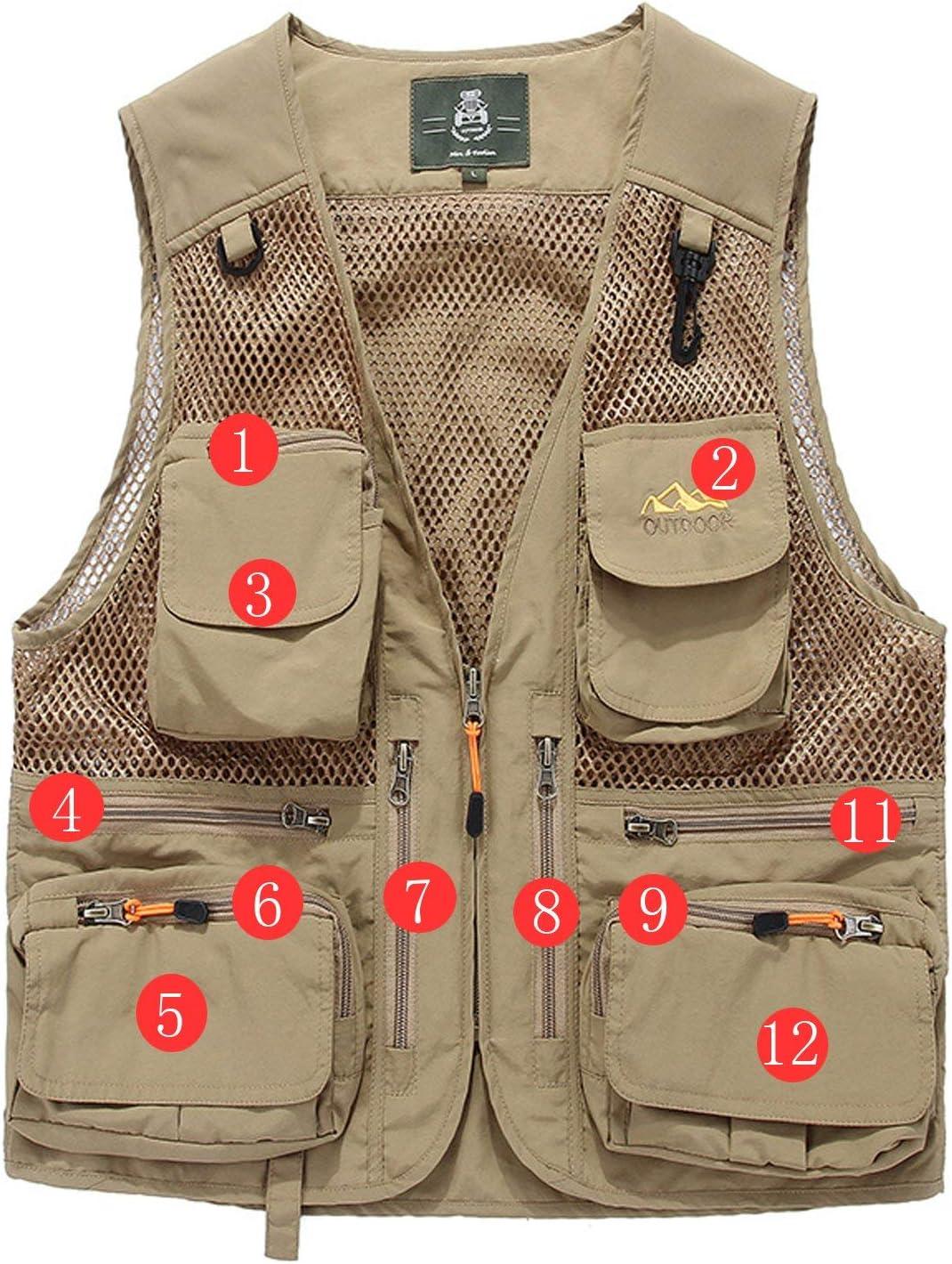 Flygo Men’s Quick Dry Fishing Hunting Photograghy Journalist Outdoor Mesh Vest Jacket(Khaki)