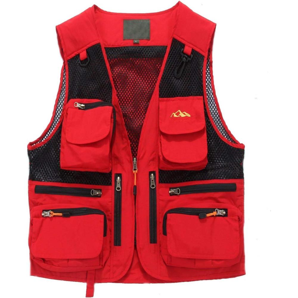 Flygo Men’s Quick Dry Fishing Hunting Photograghy Journalist Outdoor Mesh Vest Jacket(Red)