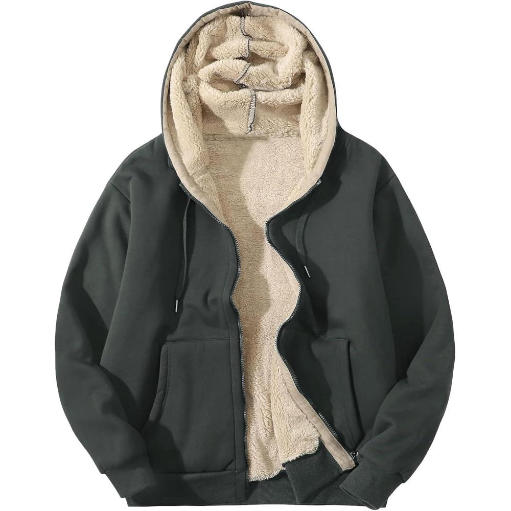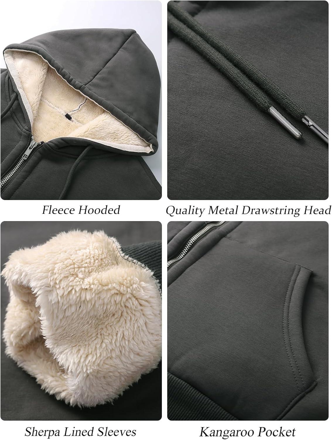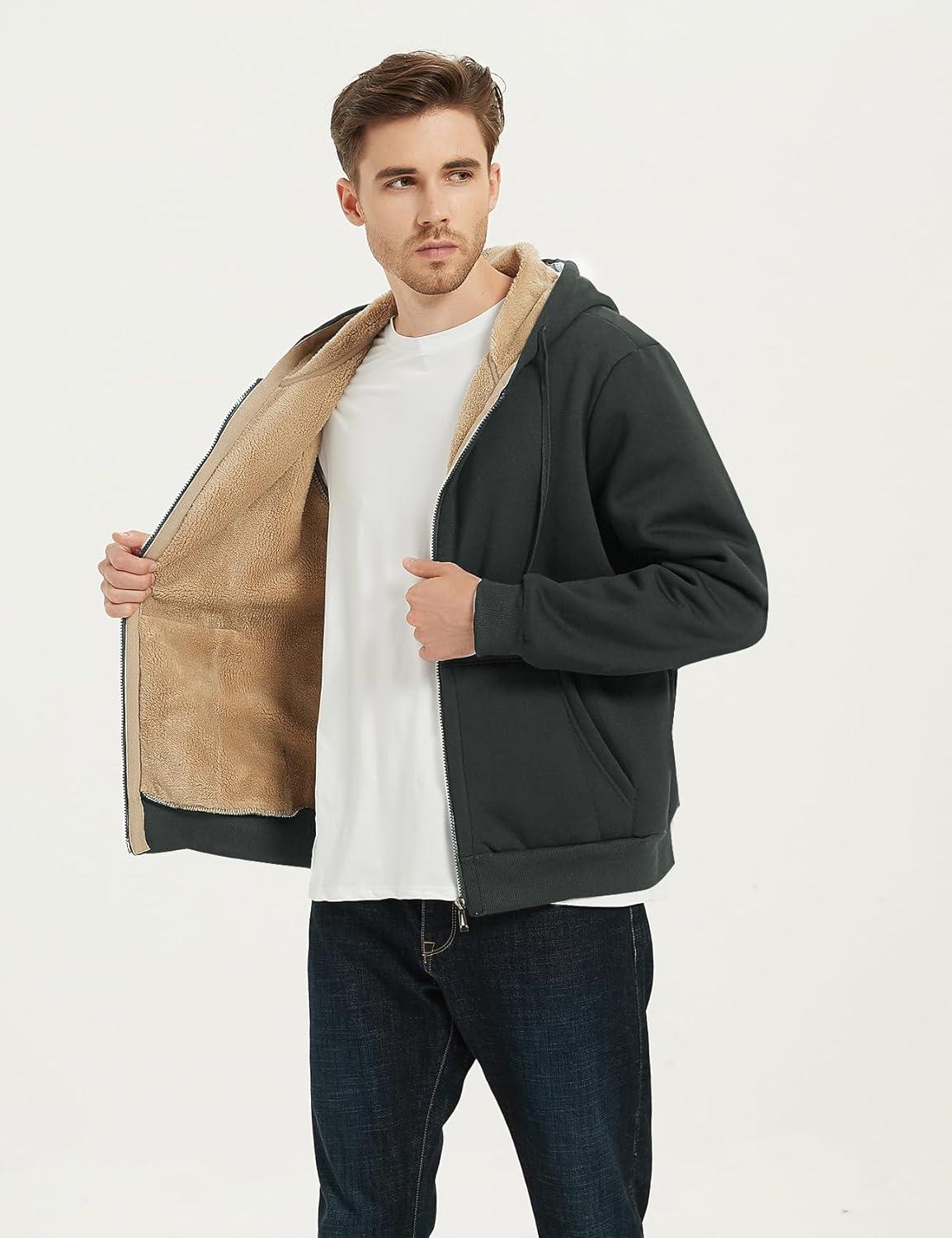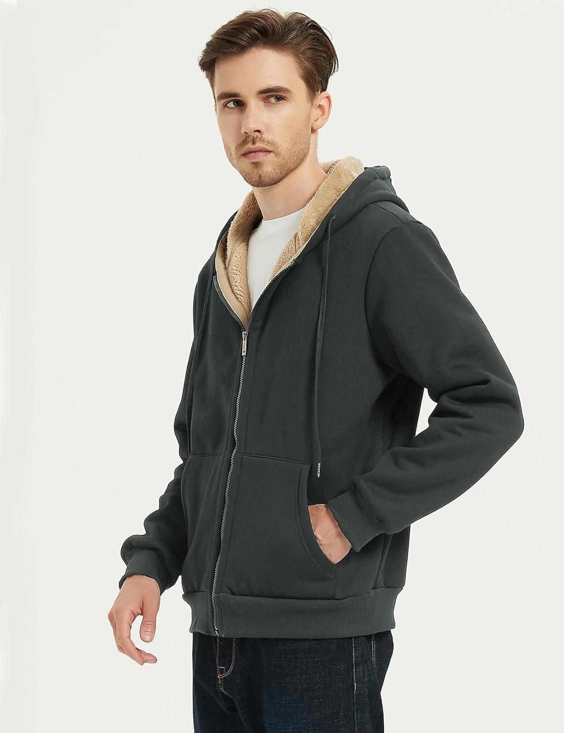 imageFlygo Mens Sherpa Hoodie Jacket Fleece Lined Zip Up Warm Hoodies Sweatshirt Winter Zipper Sweater Hooded CoatWinered