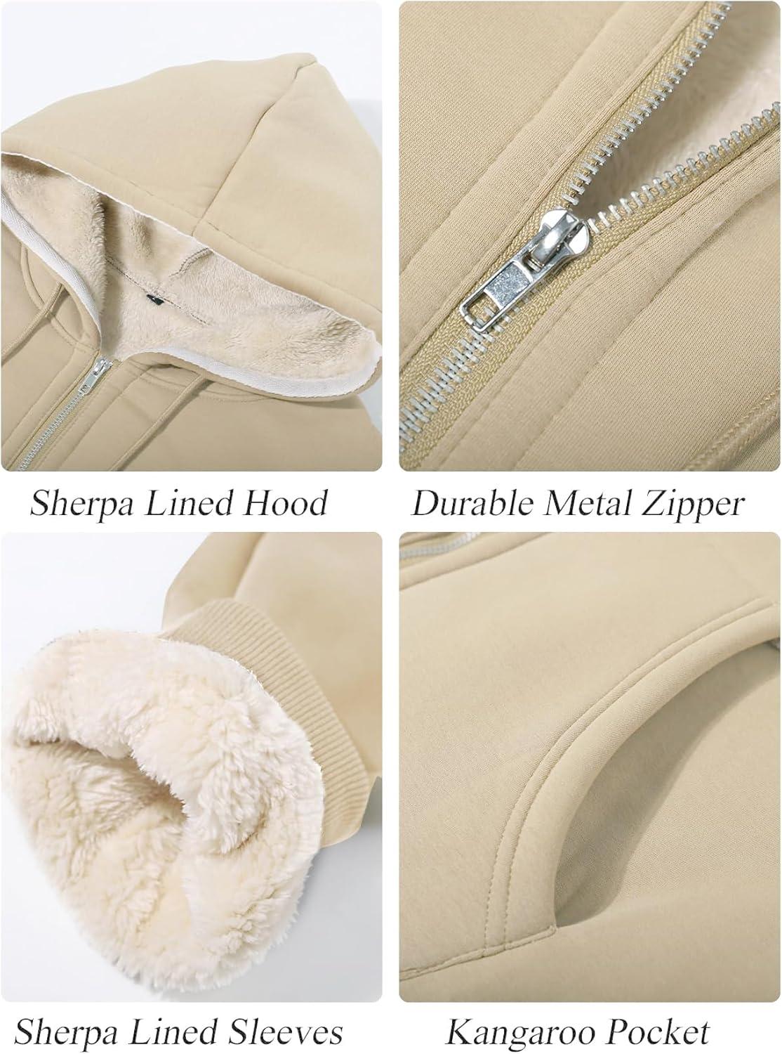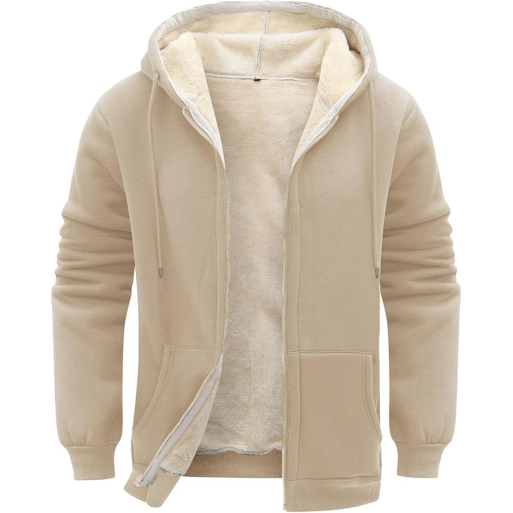 Flygo Men’s Sherpa Hoodie Jacket Fleece Lined Zip Up Warm Hoodies Sweatshirt Winter Zipper Sweater Hooded Coat(Lightkhaki)