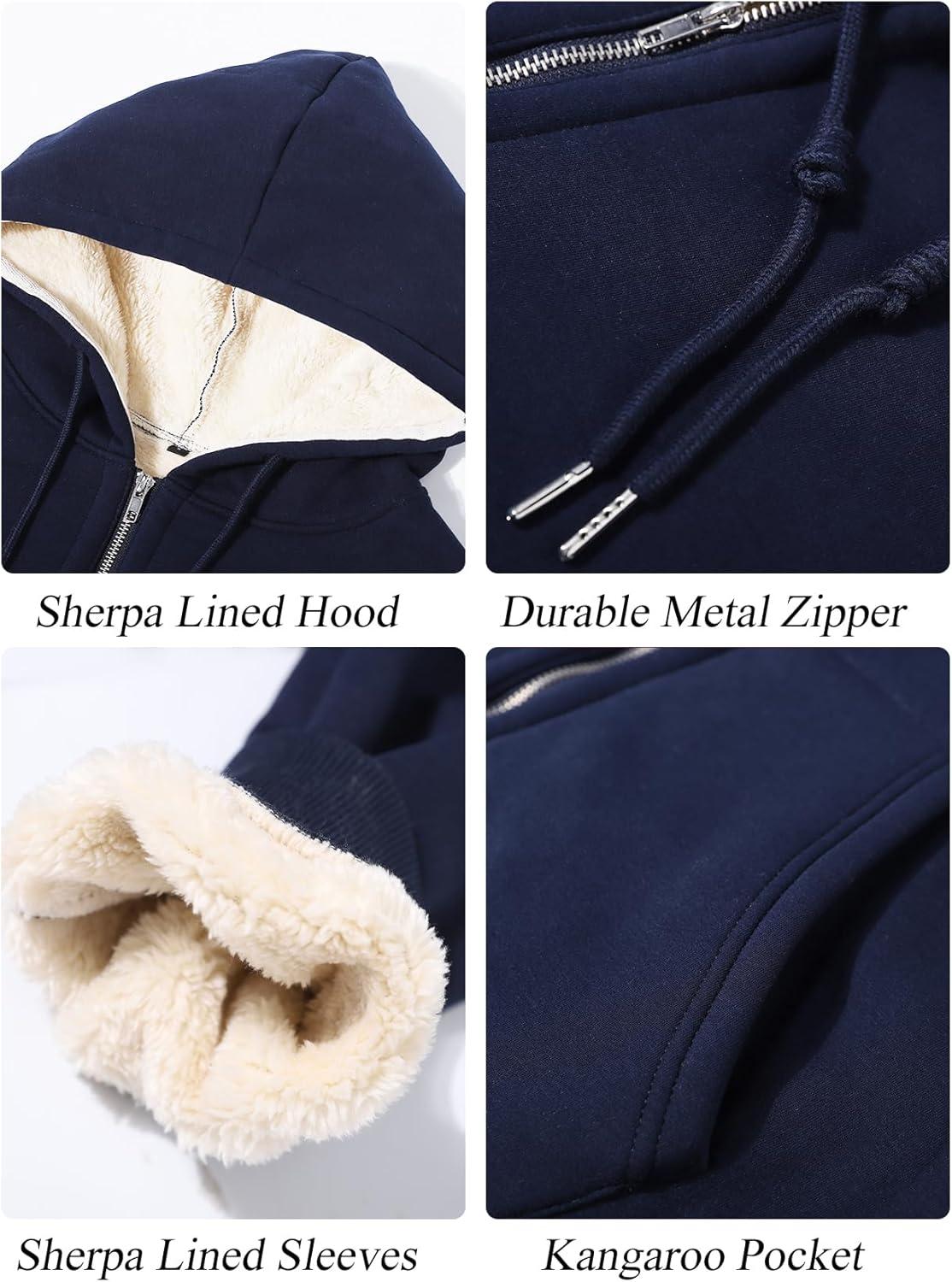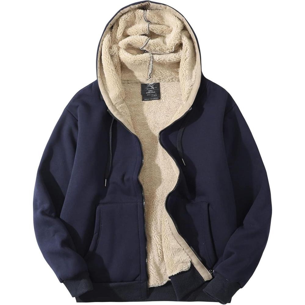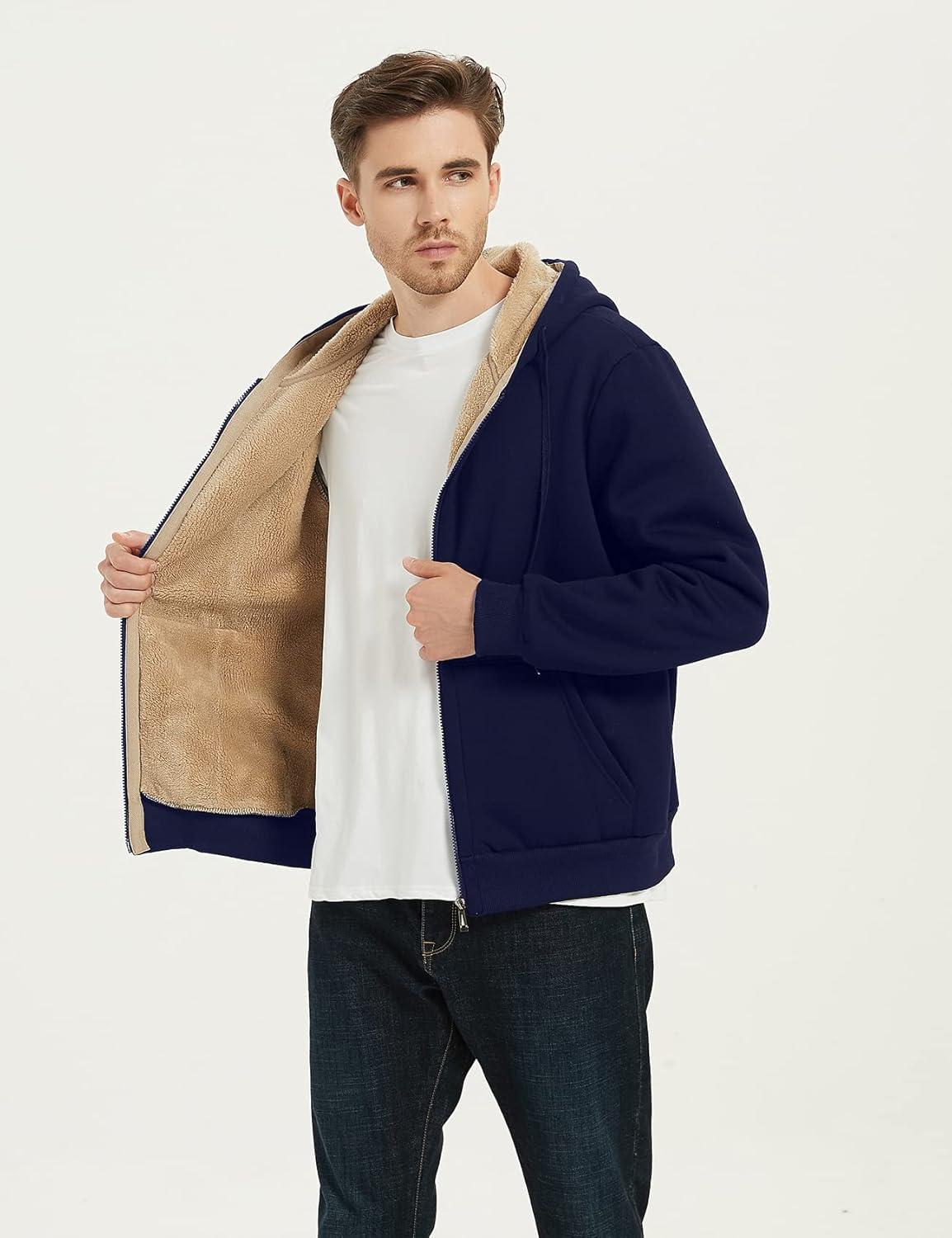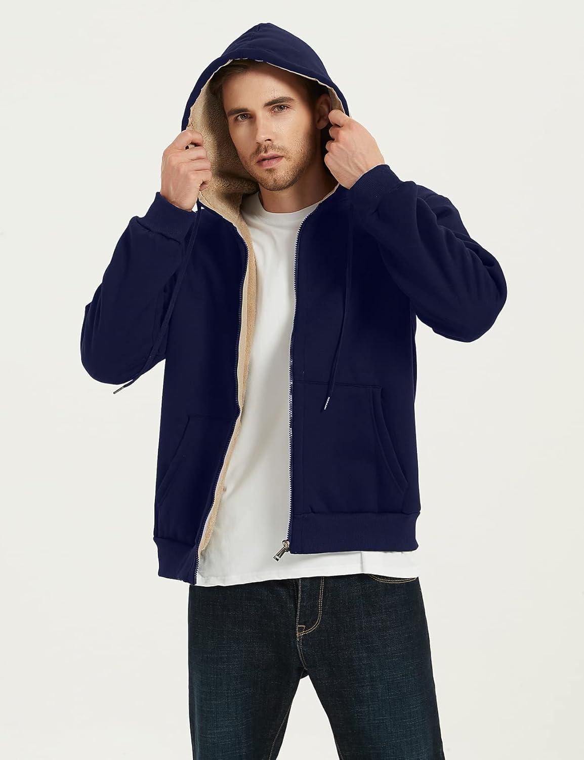 Flygo Men’s Sherpa Hoodie Jacket Fleece Lined Zip Up Warm Hoodies Sweatshirt Winter Zipper Sweater Hooded Coat(Navy)