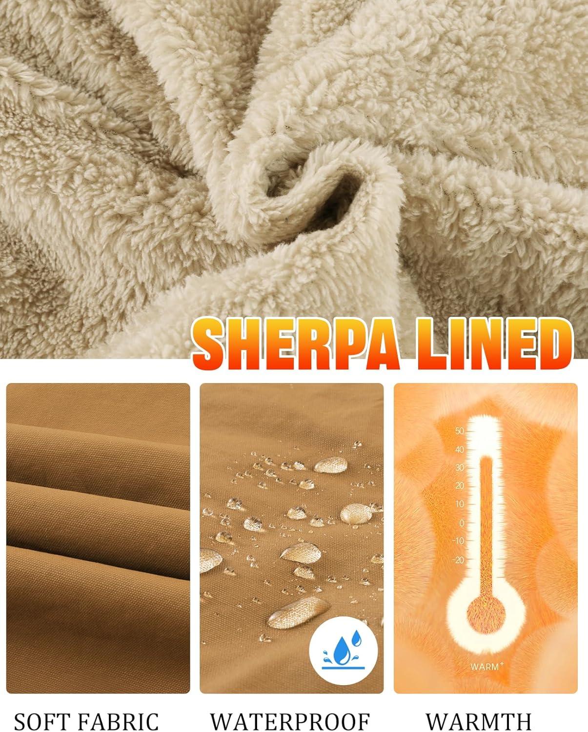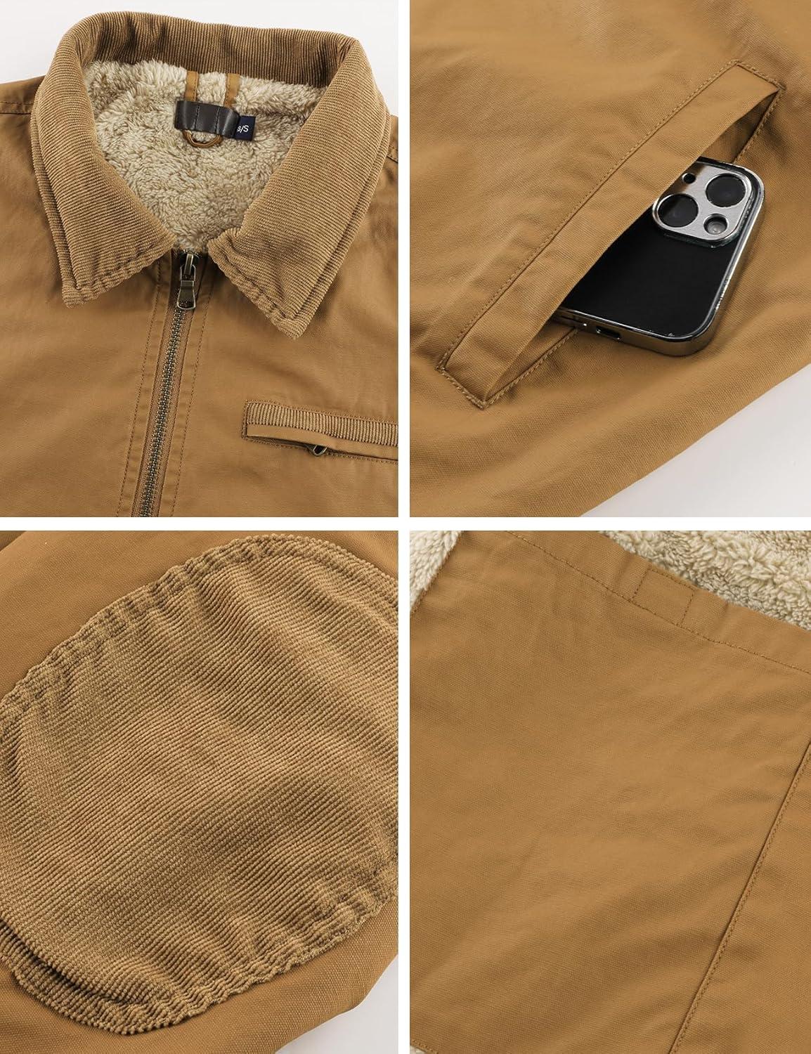 Flygo Mens Sherpa Lined Detroit Jacket Winter Warm Fleece Coat Waxed Washed Canvas Rugged Waterproof Jackets(Camel)
