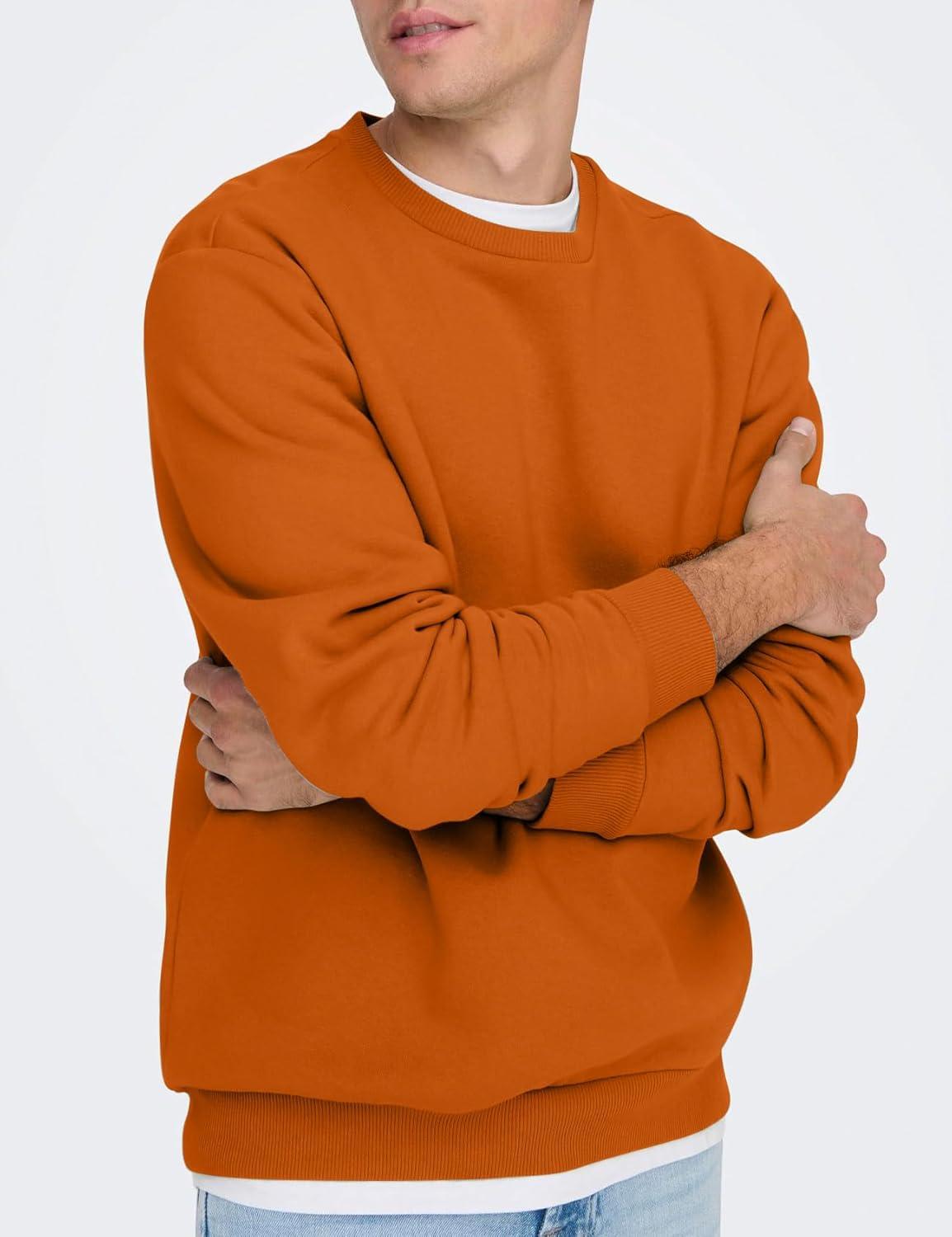 Flygo Men’s Sherpa Lined Sweatshirts Fleece Pullover Top Cotton Crew Neck Sweatshirt Warm Sweater Winter Clothes(Caramel)