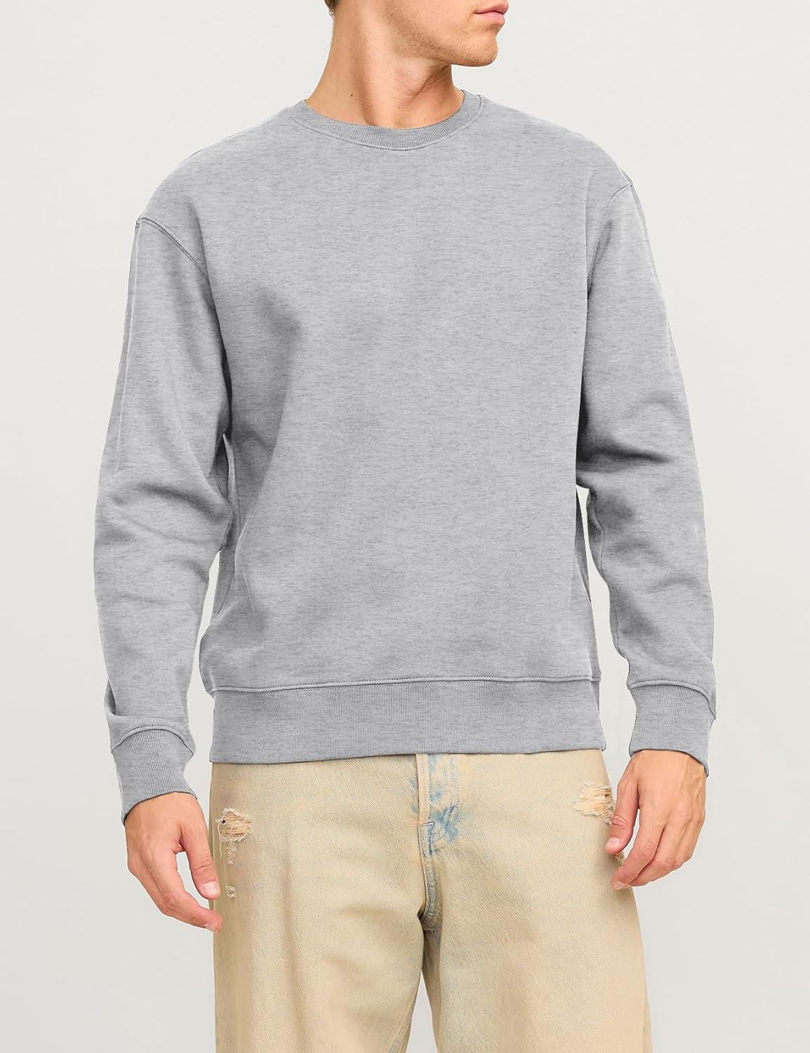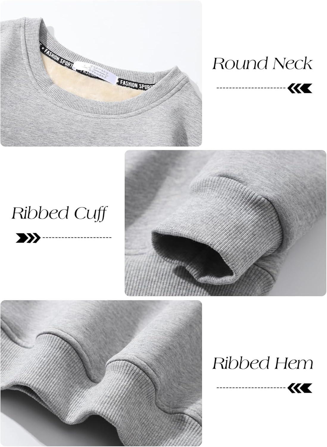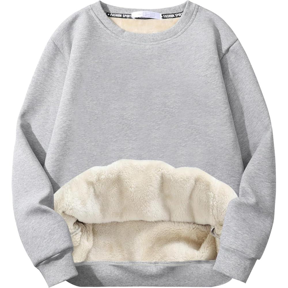 Flygo Men’s Sherpa Lined Sweatshirts Fleece Pullover Top Cotton Crew Neck Sweatshirt Warm Sweater Winter Clothes(Light Grey)