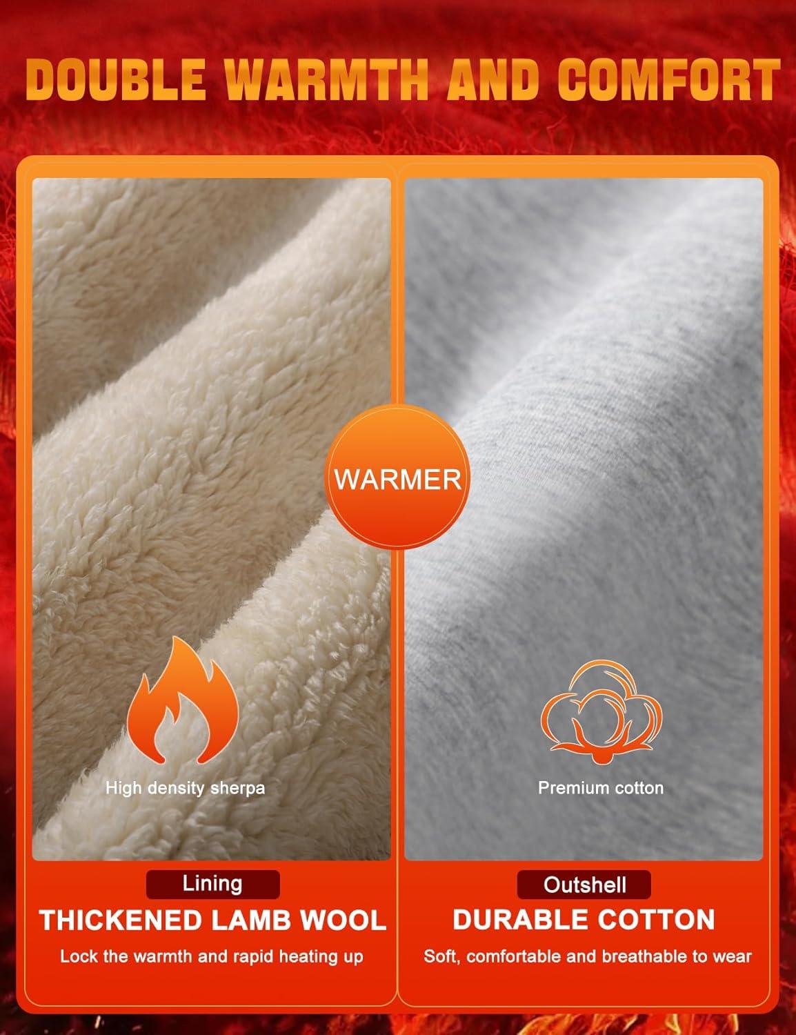 Flygo Men’s Sherpa Lined Sweatshirts Fleece Pullover Top Cotton Crew Neck Sweatshirt Warm Sweater Winter Clothes(Black)