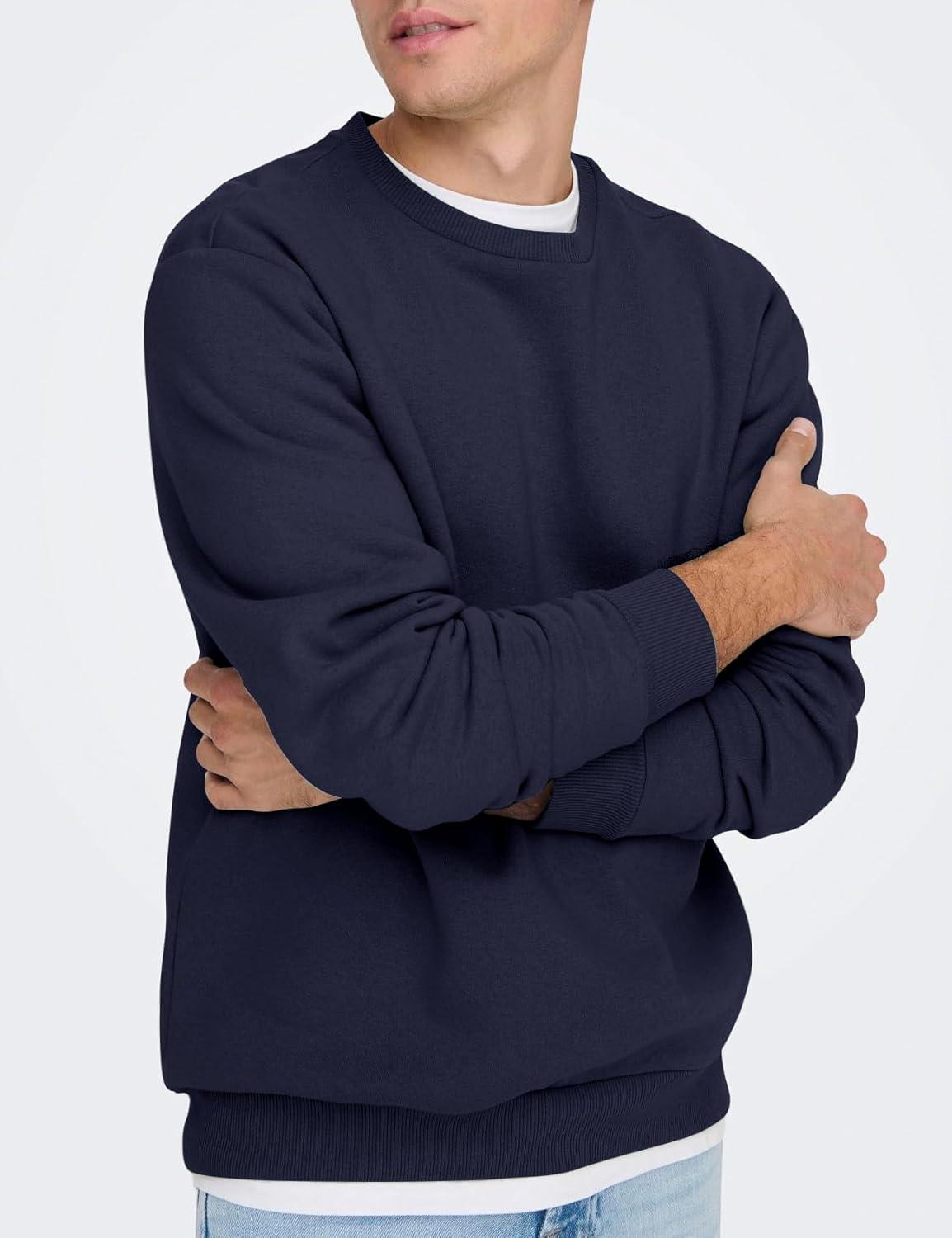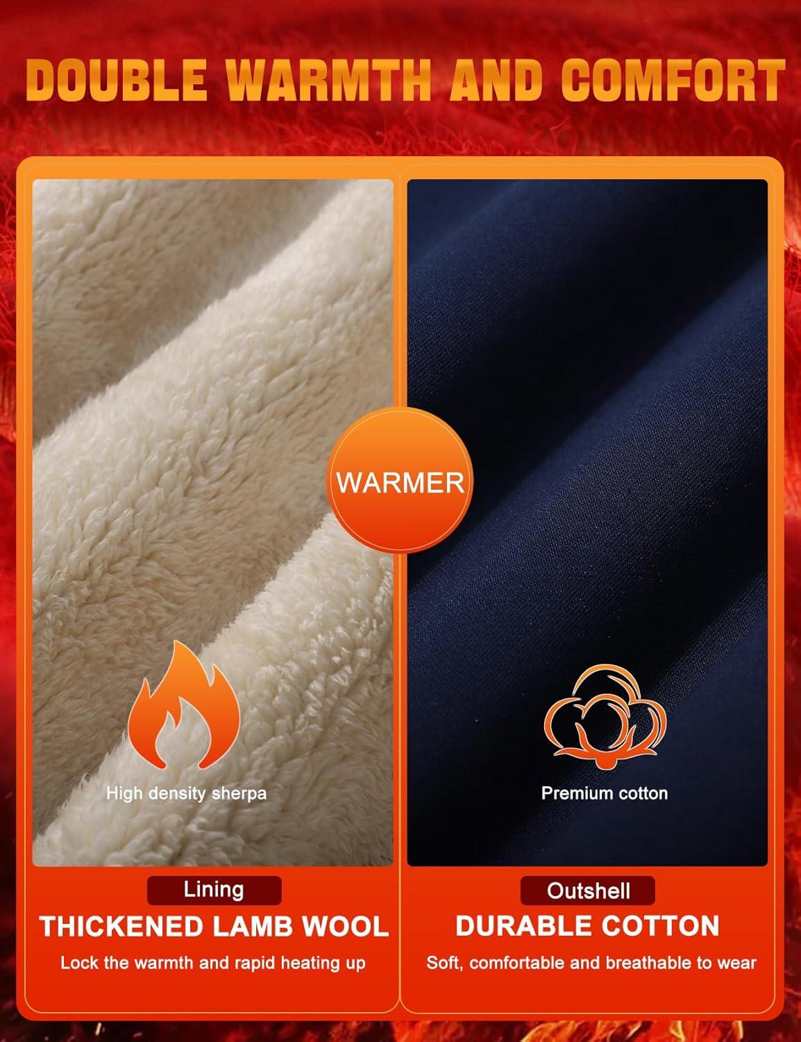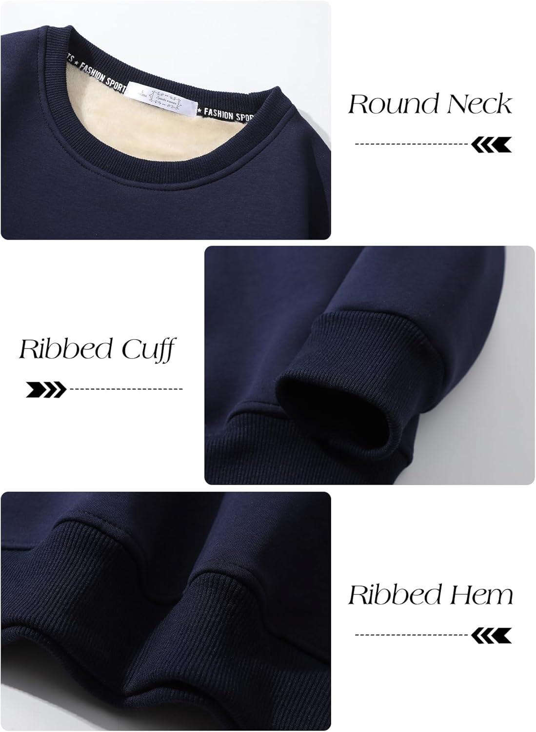 Flygo Men’s Sherpa Lined Sweatshirts Fleece Pullover Top Cotton Crew Neck Sweatshirt Warm Sweater Winter Clothes(Navy)