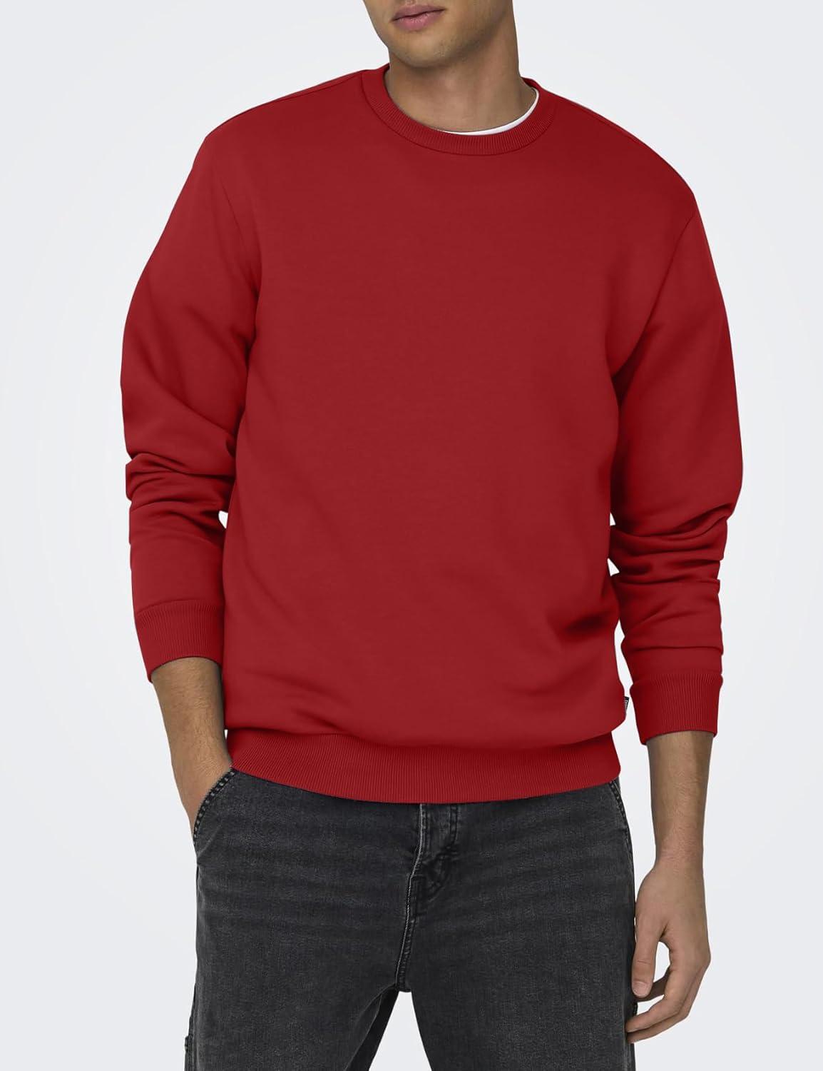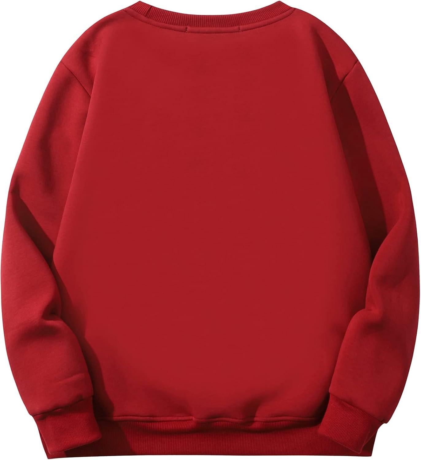 Flygo Men’s Sherpa Lined Sweatshirts Fleece Pullover Top Cotton Crew Neck Sweatshirt Warm Sweater Winter Clothes(Red)