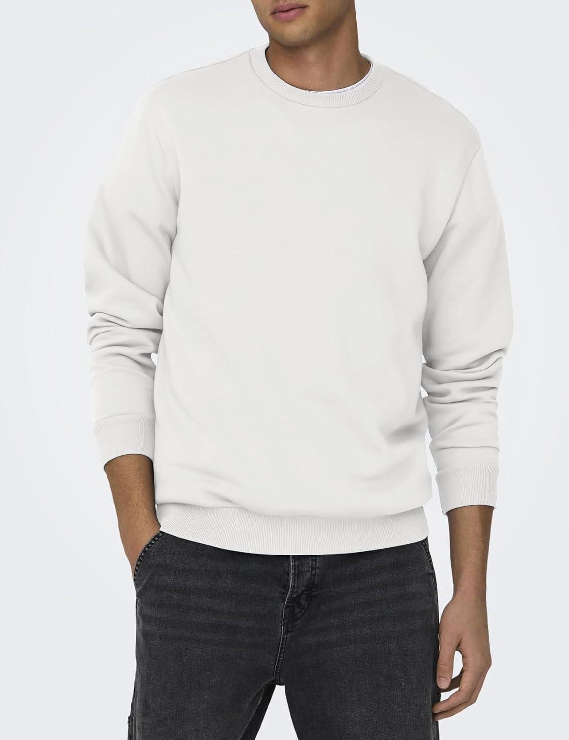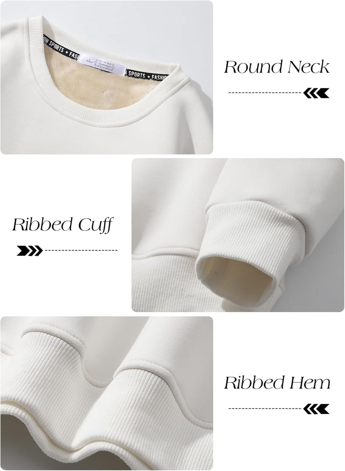 Flygo Men’s Sherpa Lined Sweatshirts Fleece Pullover Top Cotton Crew Neck Sweatshirt Warm Sweater Winter Clothes(White)