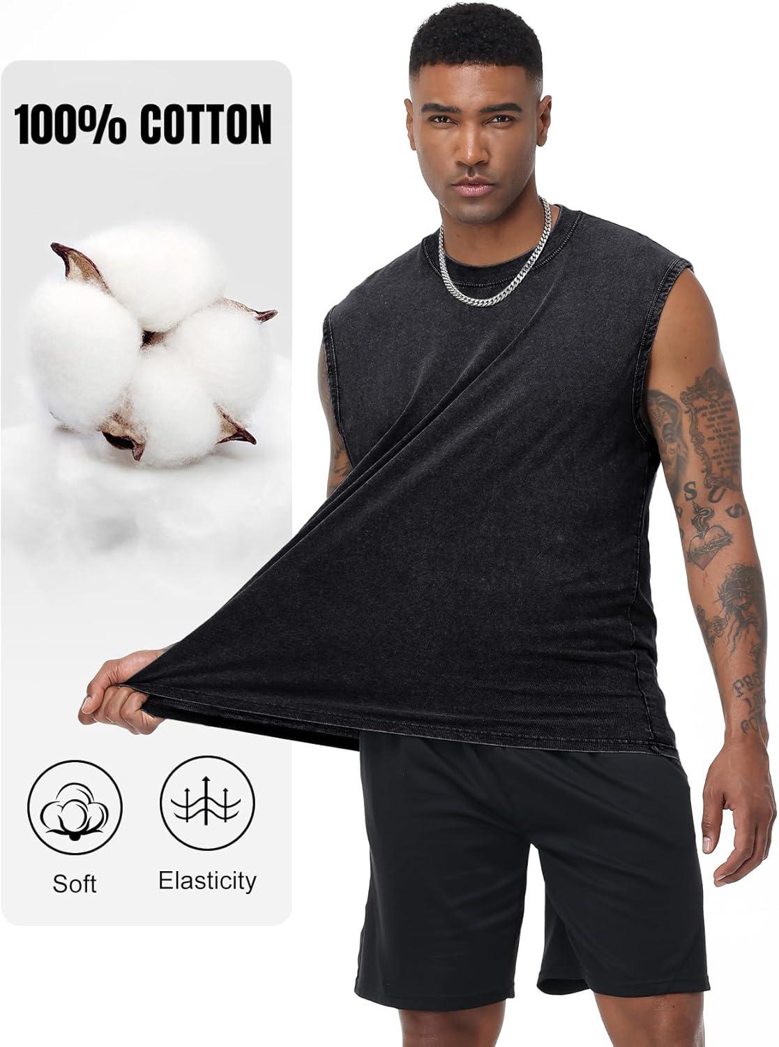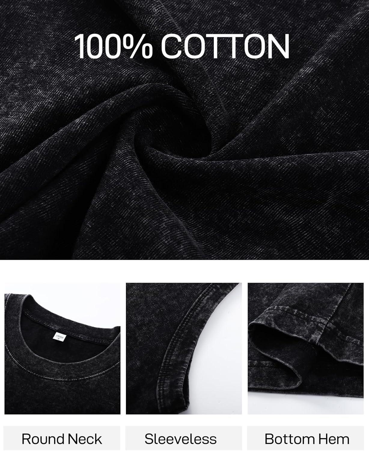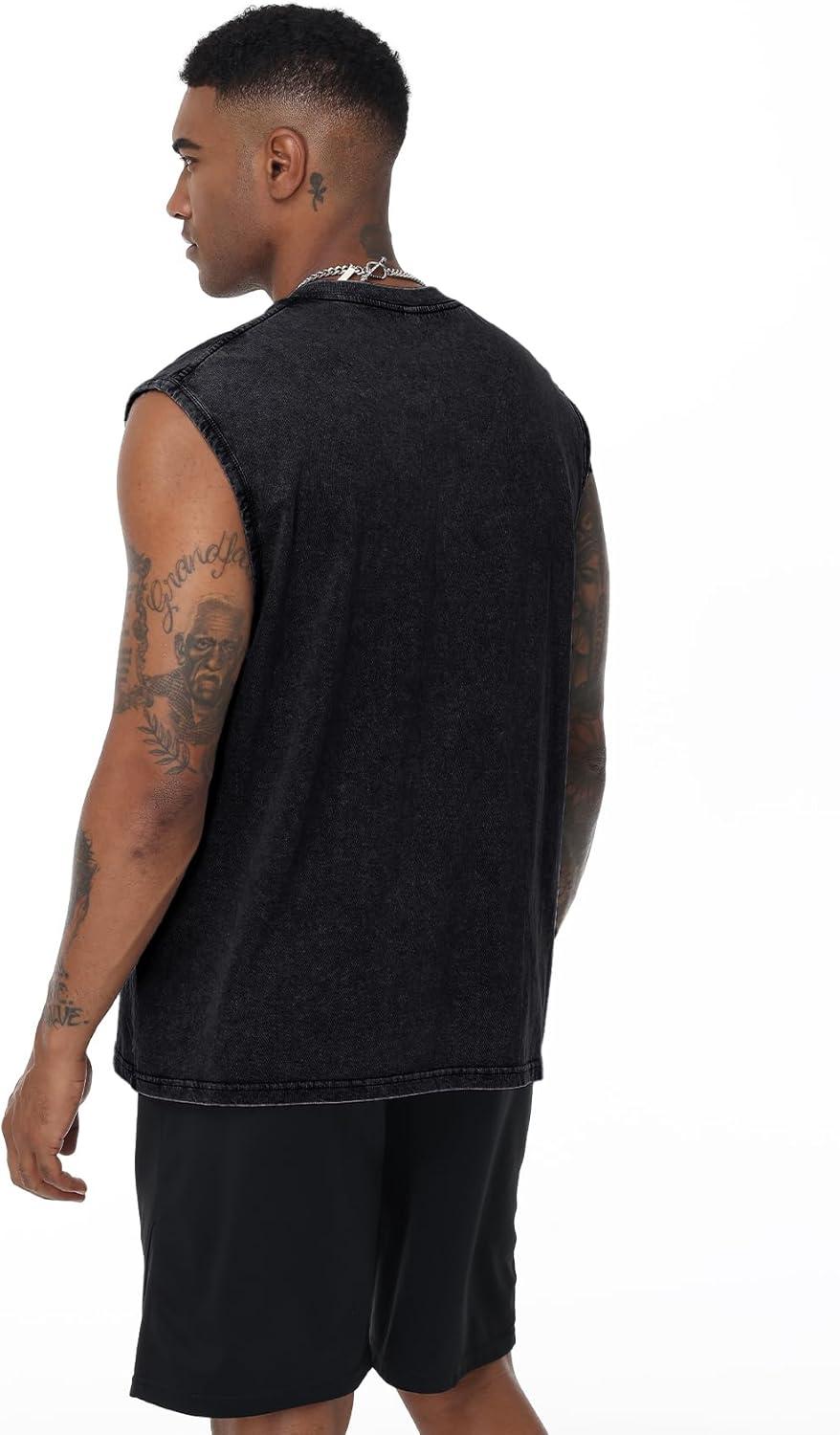 Flygo Mens Sleeveless Workout Tank Tops Cotton Cut Off Muscle T Shirts Acid Wash Loose Running Gym Tees(Black)
