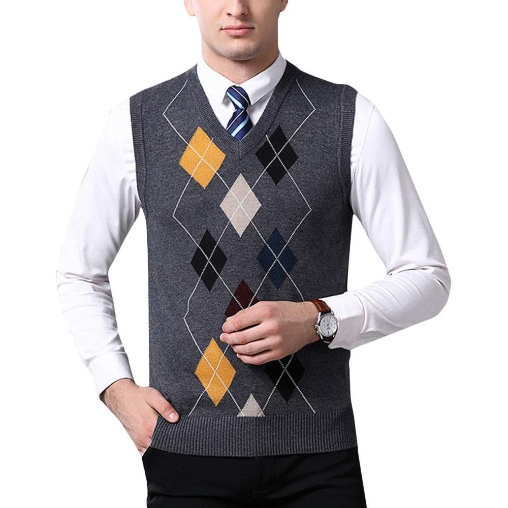 Score big savings on Flygo Men’s Slim V-Neck Argyle Sleeveless Pullover Sweater Knitted Business Golf Vest(#2 Grey) during our back-to-school sale. Limited quantities available.
