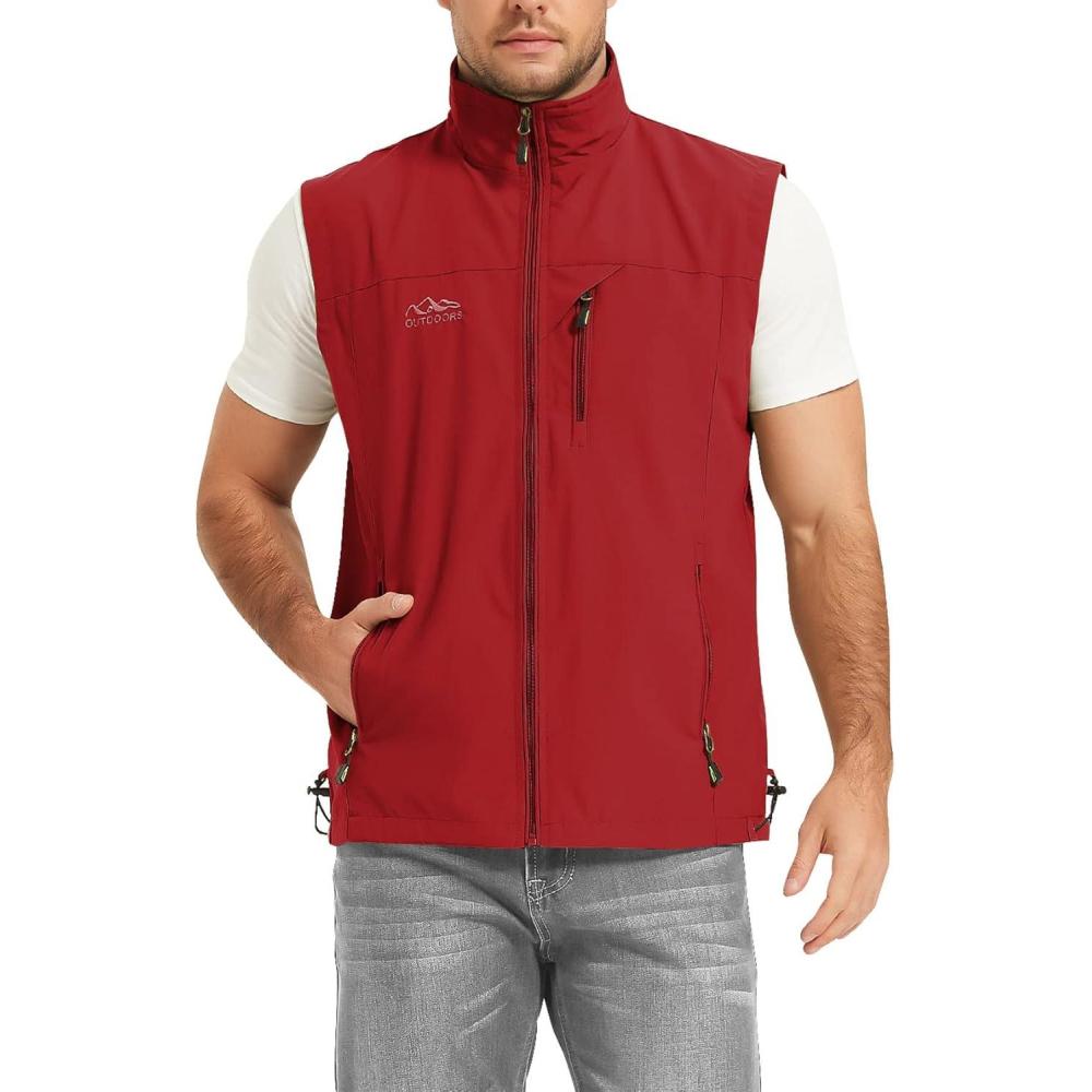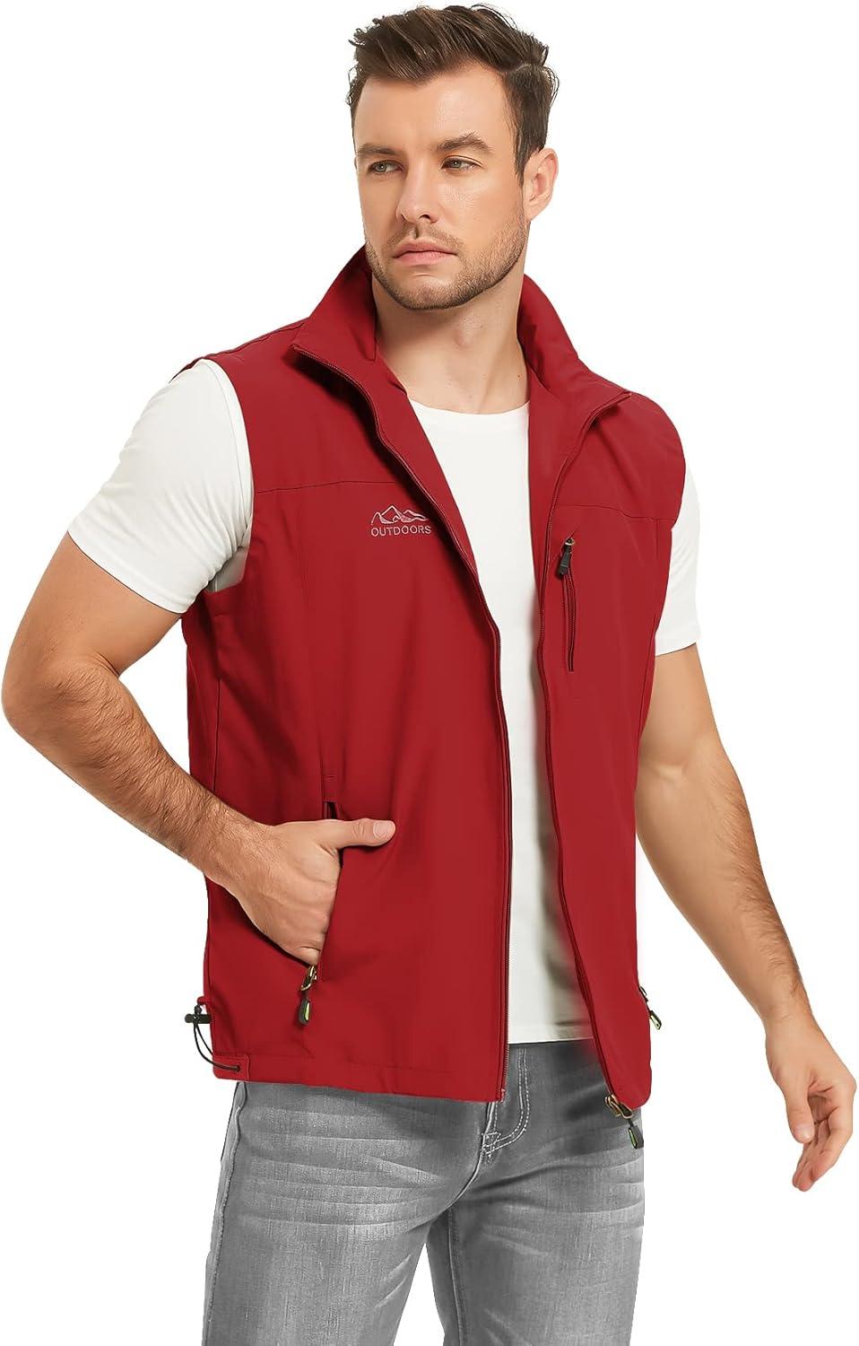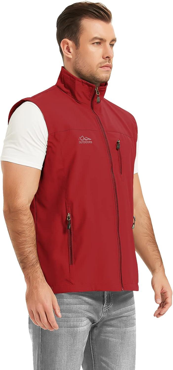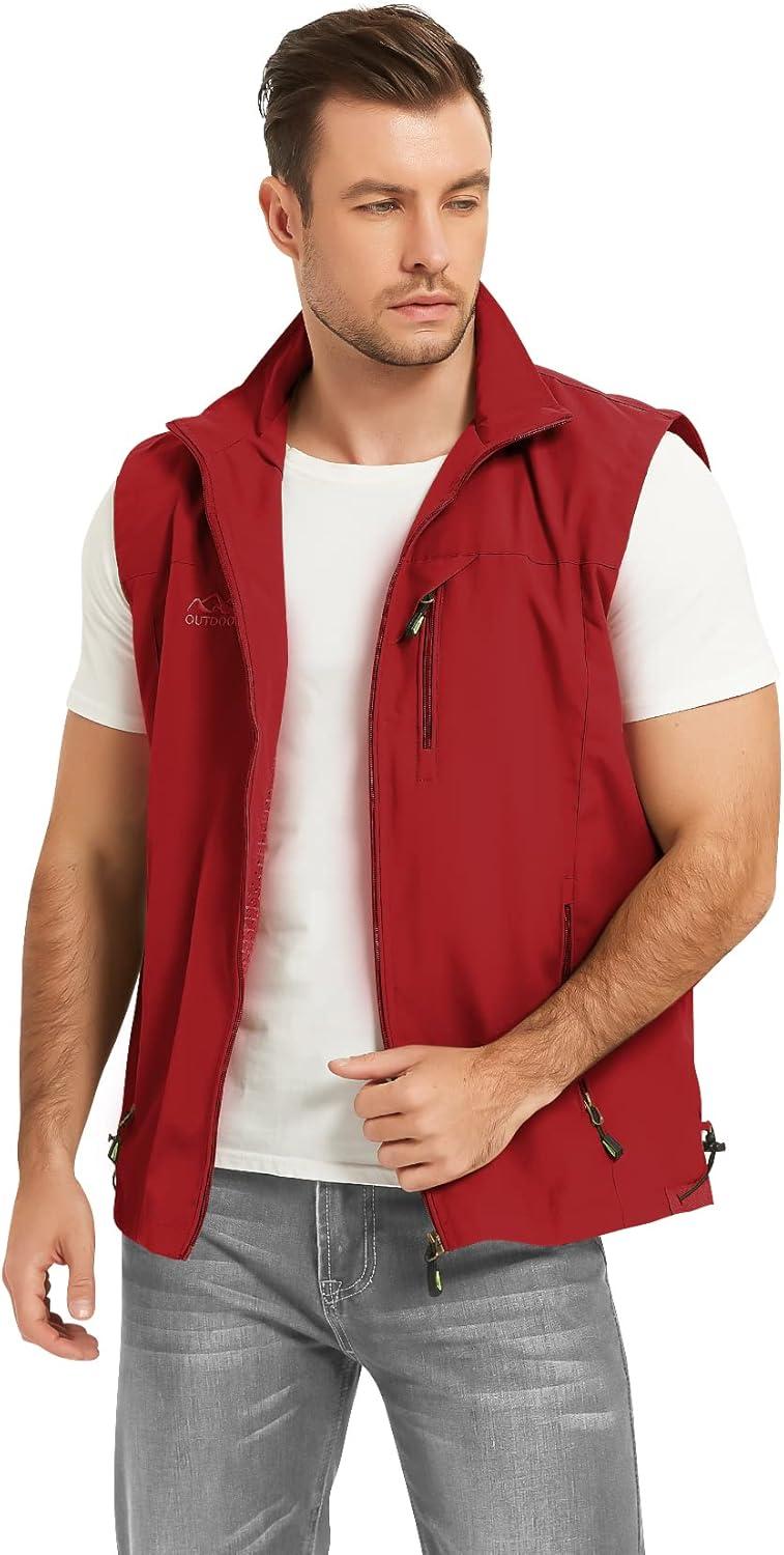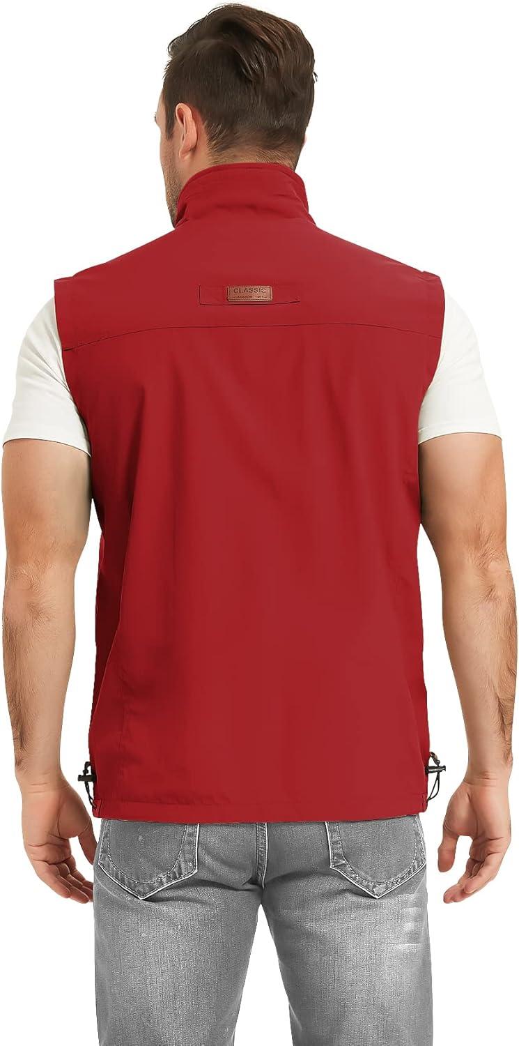 Flygo Mens Summer Casual Lightweight Outdoor Work Fishing Photo Travel Utility Vest with Pockets(01 Red)