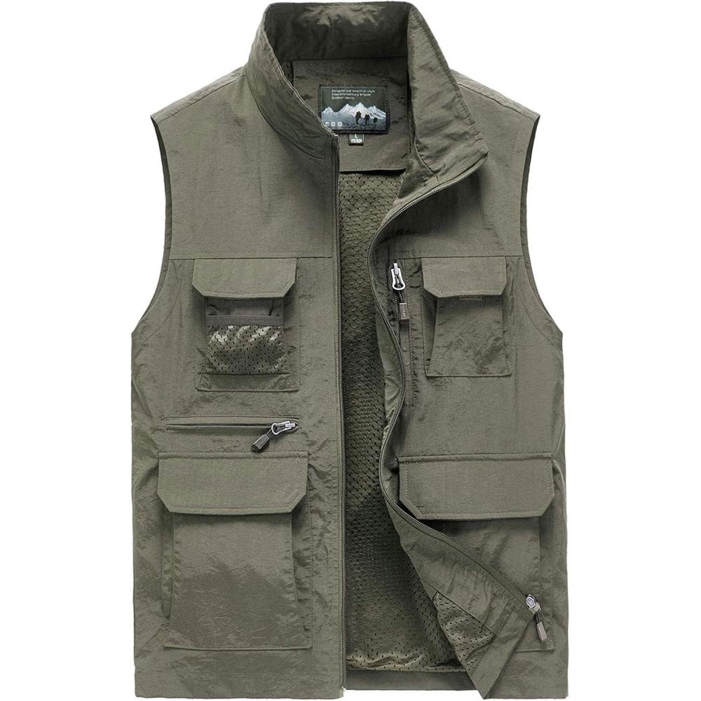 Flygo Mens Summer Casual Lightweight Outdoor Work Fishing Photo Travel Utility Vest with Pockets(02 Khaki)