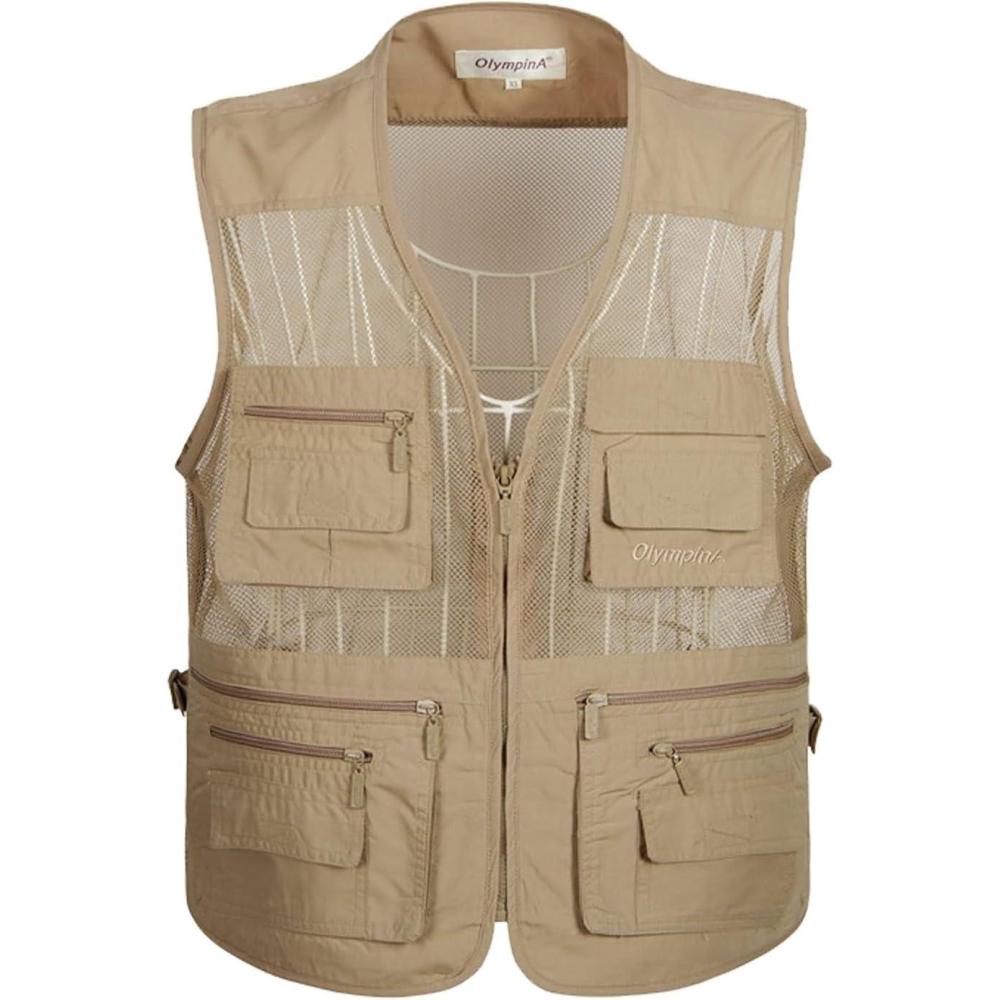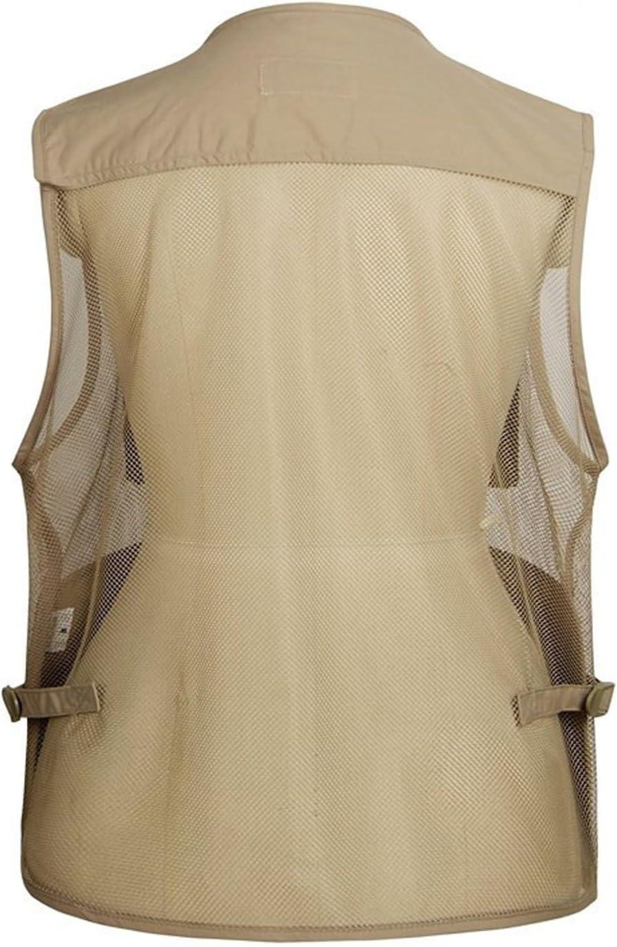 Flygo Men’s Summer Mesh Fishing Vest Photography Work Multi-pockets Outdoors Journalist’s Vest Sleeveless Jacket (3X-Large, Khaki)