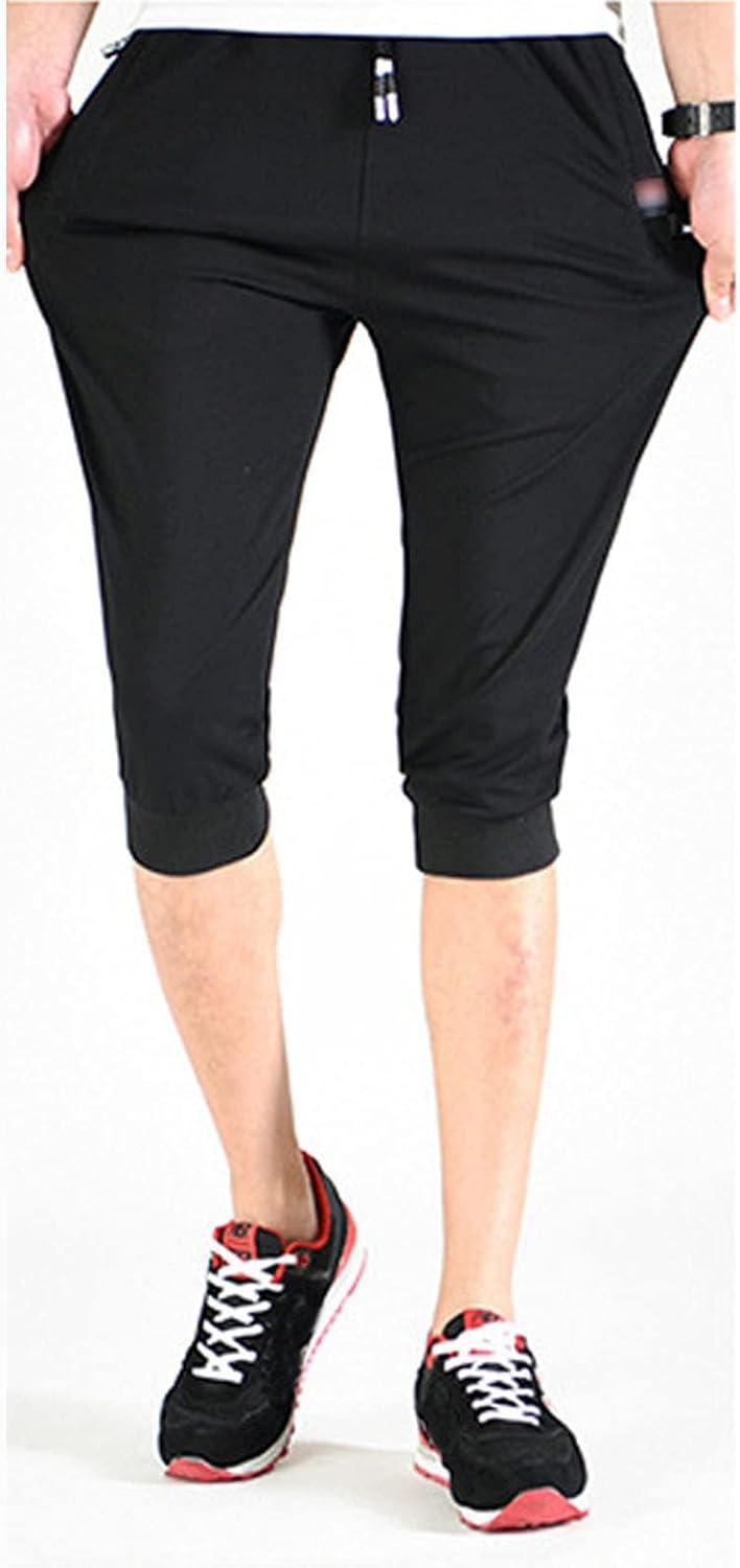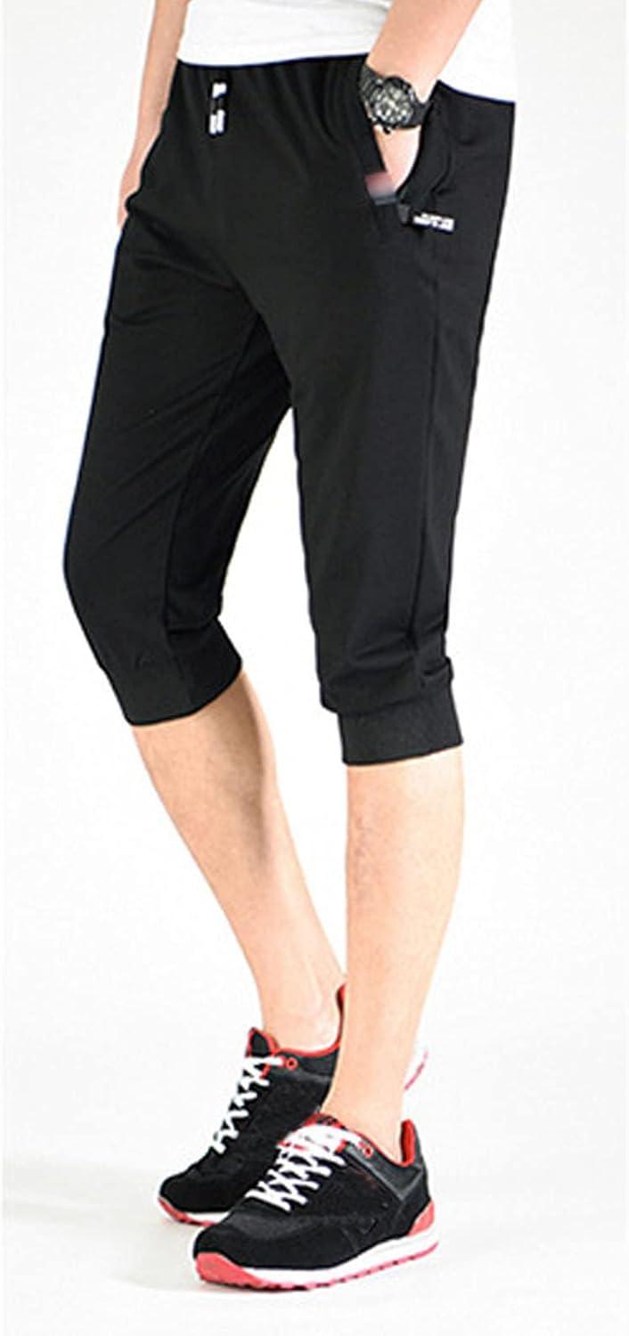 Flygo Men’s Sweat Shorts Below Knee Cotton Workout Bodybuilding Running 3/4 Jogger Capri Pants(#3 Black)