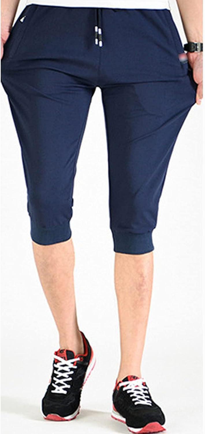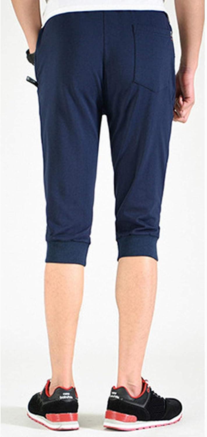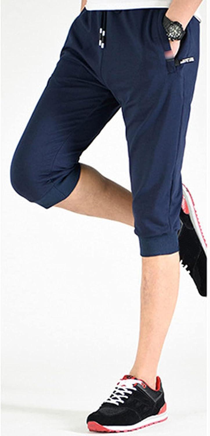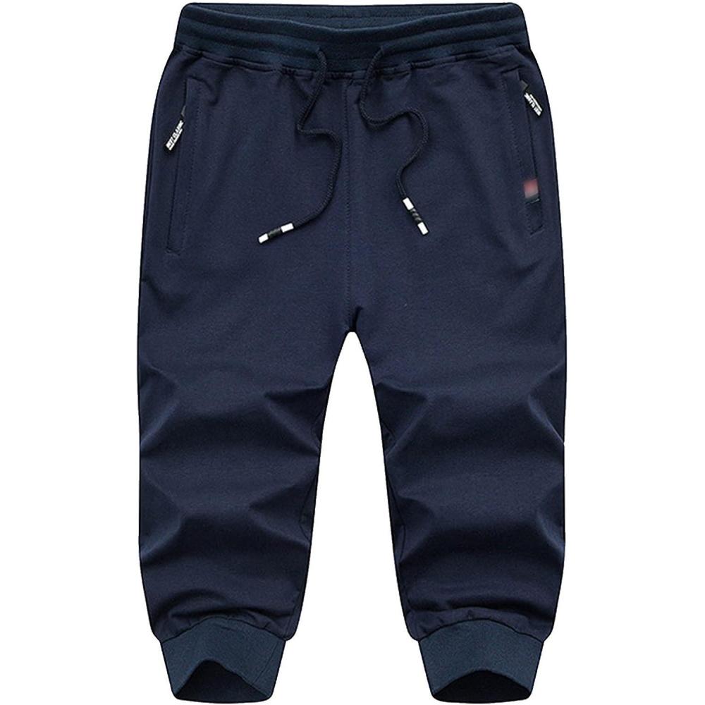 Flygo Men’s Sweat Shorts Below Knee Cotton Workout Bodybuilding Running 3/4 Jogger Capri Pants(#3 Navy)