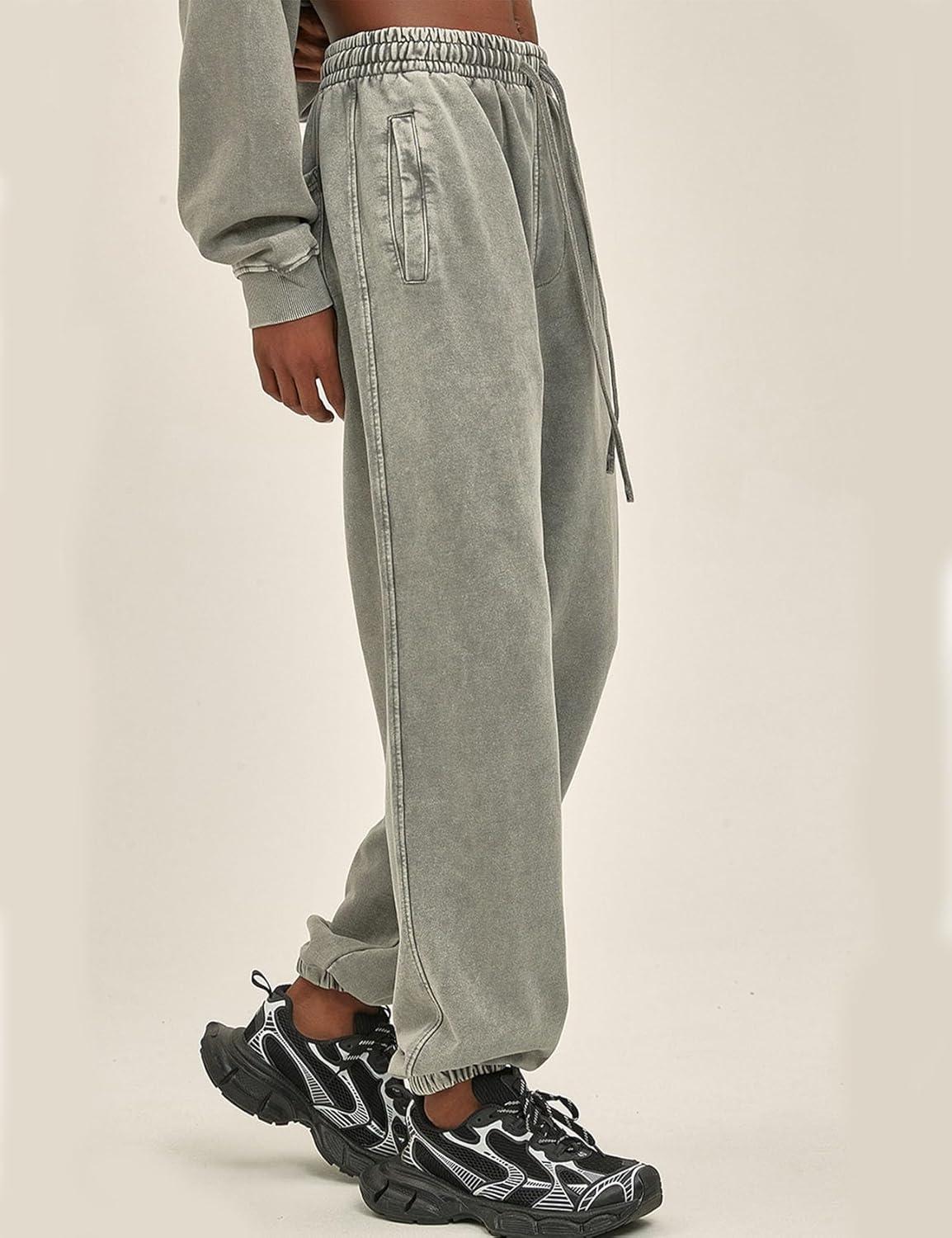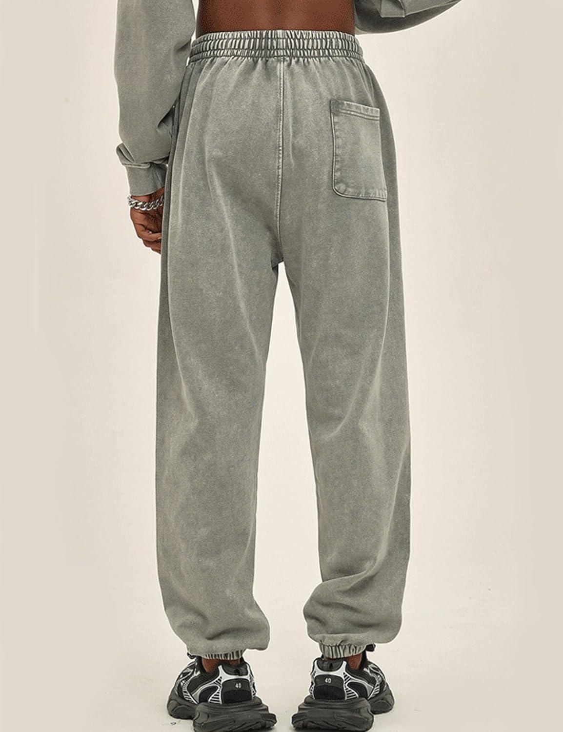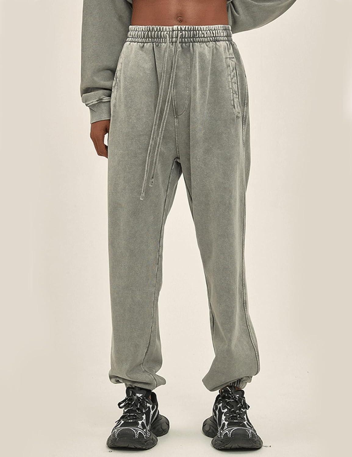 Flygo Mens Sweatpants Athletic Acid Washed Cotton Gym Elastic Waist Drawstring Jogger Track Pants Cinch Bottom with Pockets(Grey)