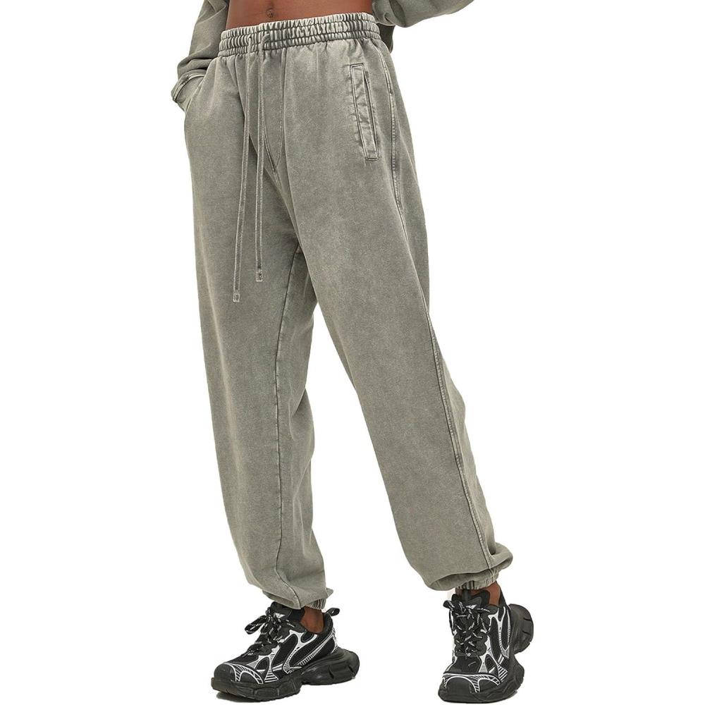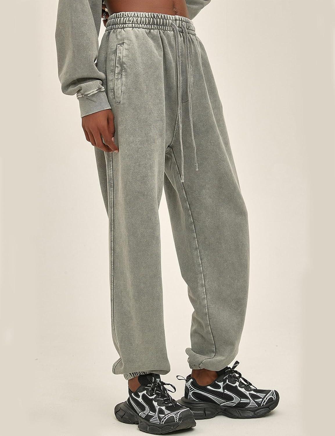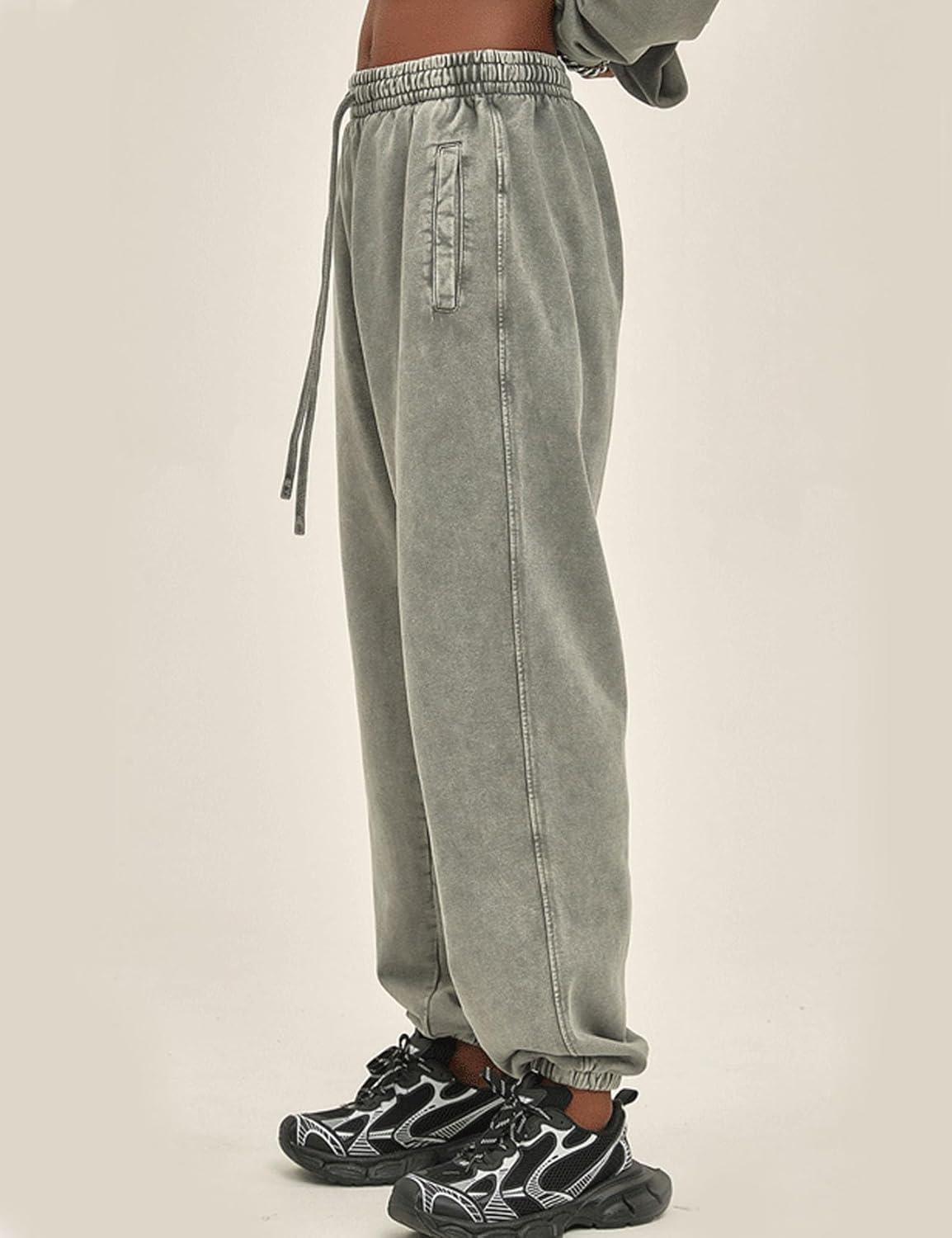 Flygo Mens Sweatpants Athletic Acid Washed Cotton Gym Elastic Waist Drawstring Jogger Track Pants Cinch Bottom with Pockets(Grey)