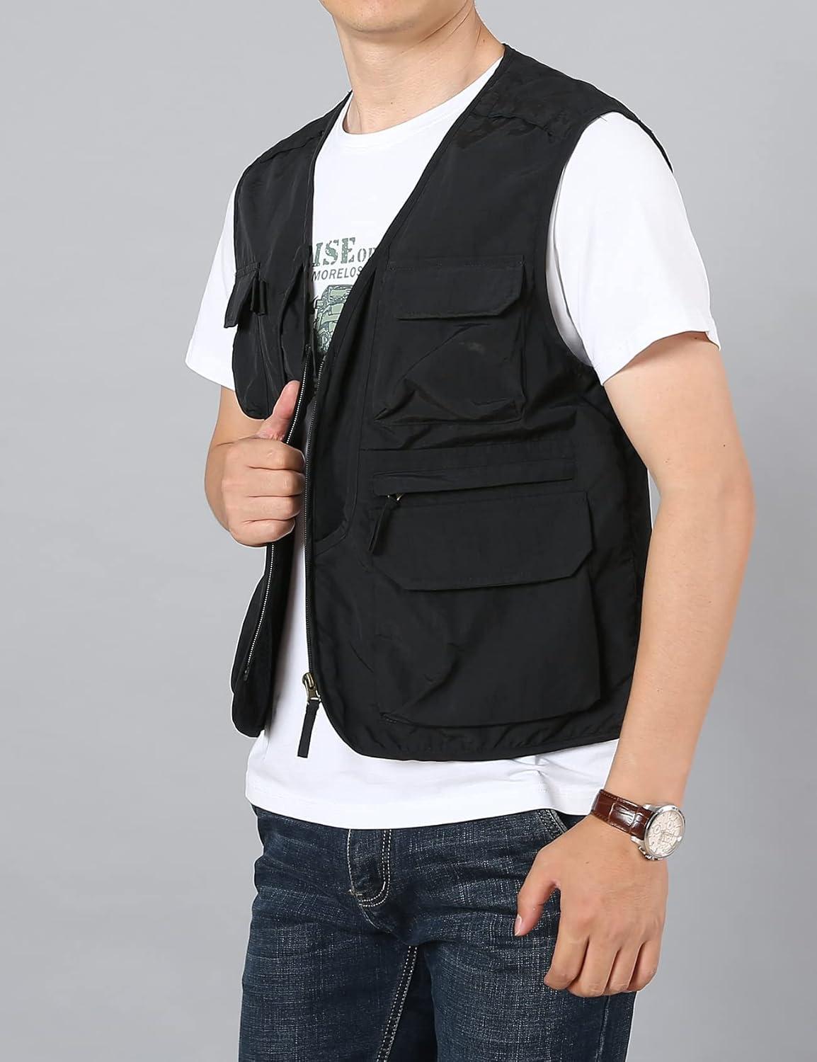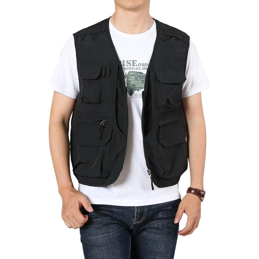 Flygo Men’s Utility Cargo Vest Outdoor Fishing Safari Travel Work Photo Vest with Pockets(01 Black)
