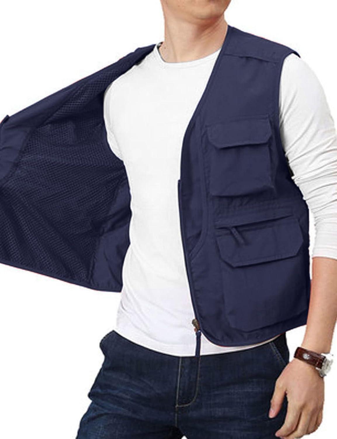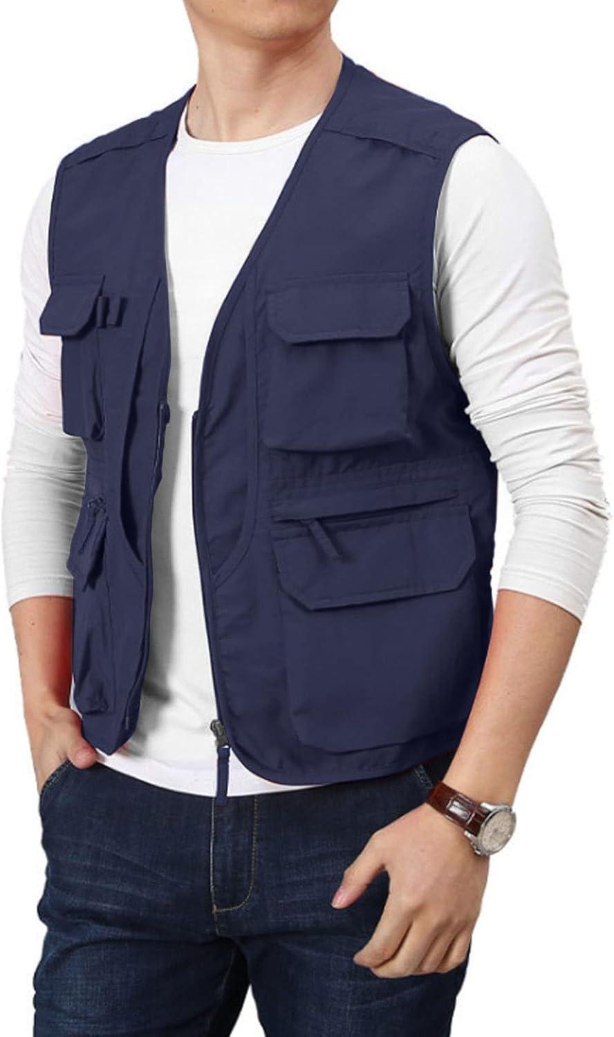 Flygo Men’s Utility Cargo Vest Outdoor Fishing Safari Travel Work Photo Vest with Pockets(01 Navy Blue)