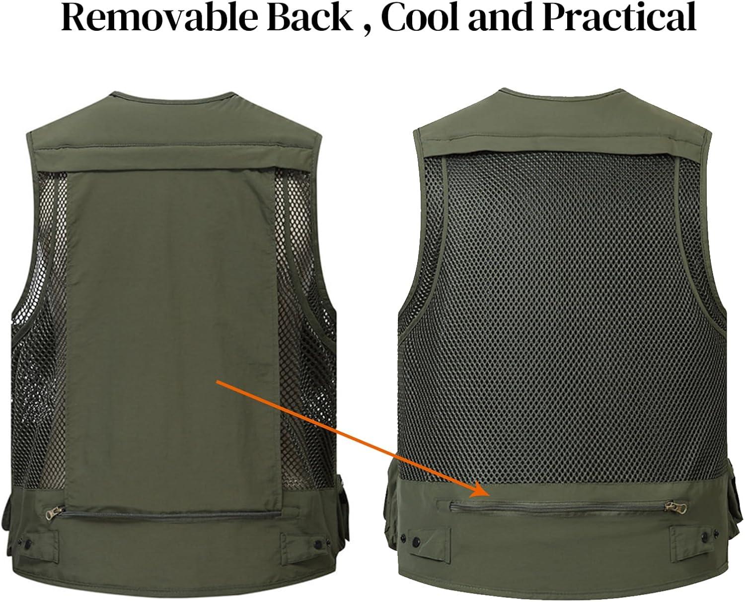 Flygo Men’s Utility Cargo Vest Outdoor Fishing Safari Travel Work Photo Vest with Pockets(01 Army Green)