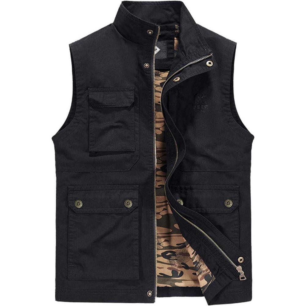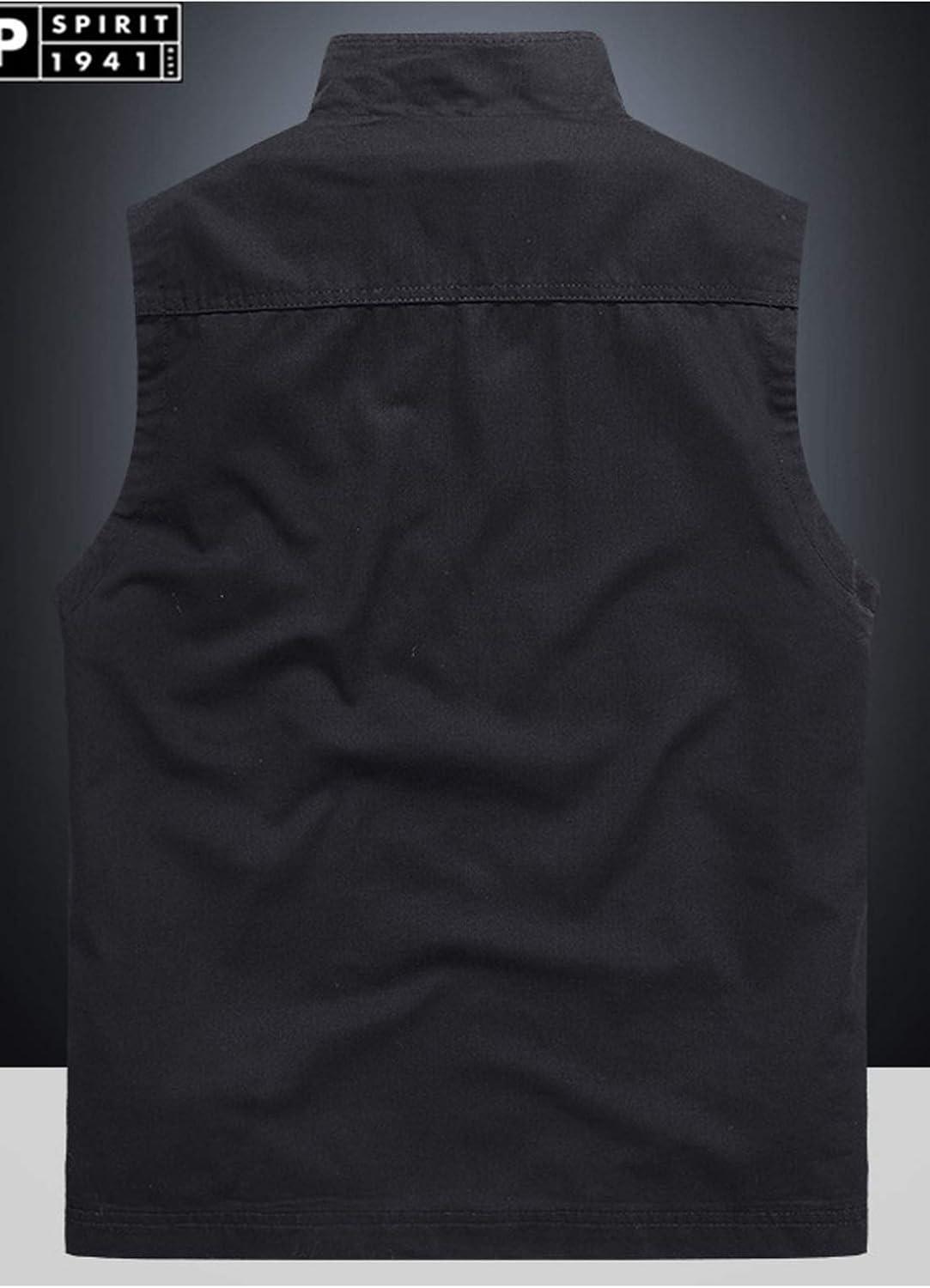 Flygo Mens Utility Cotton Canvas Duck Safari Fishing Vest Jacket Outerwear(Black)