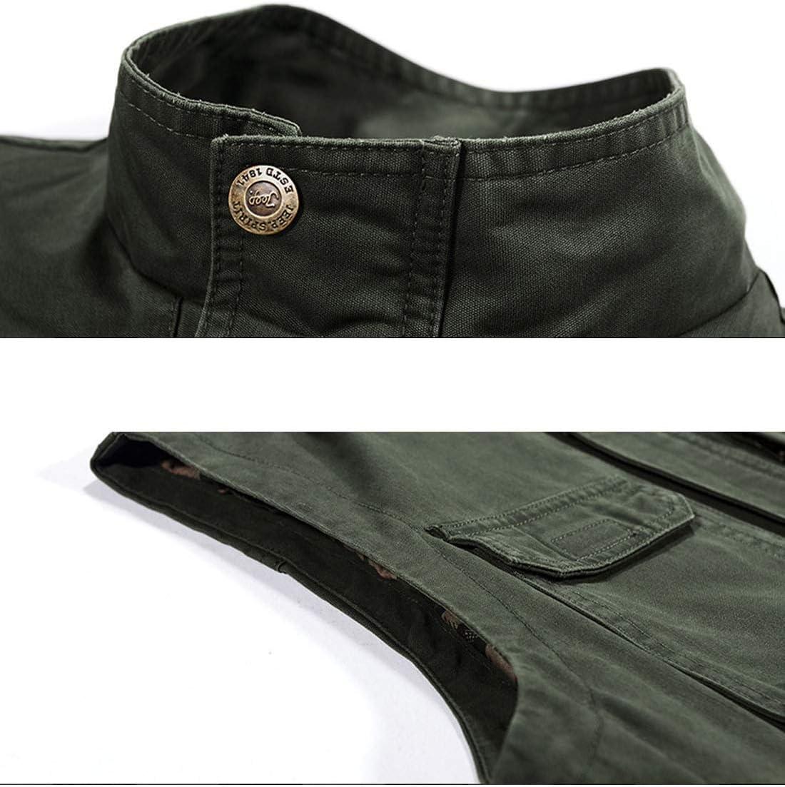 Flygo Mens Utility Cotton Canvas Duck Safari Fishing Vest Jacket Outerwear(Army Green)