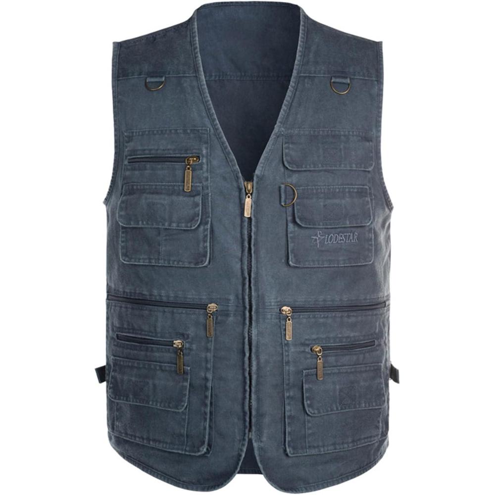 Flygo Men’s Vest Plus Size 16 Pockets Leisure Outdoor Lightweight Fishing Photo Journalist Vest(Blue)