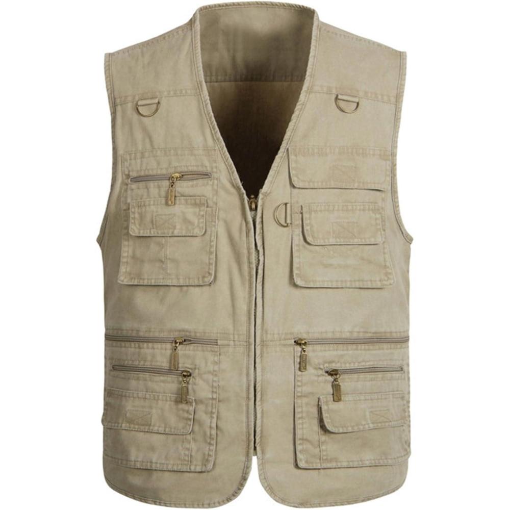 Flygo Men’s Vest Plus Size 16 Pockets Leisure Outdoor Lightweight Fishing Photo Journalist Vest(Khaki)