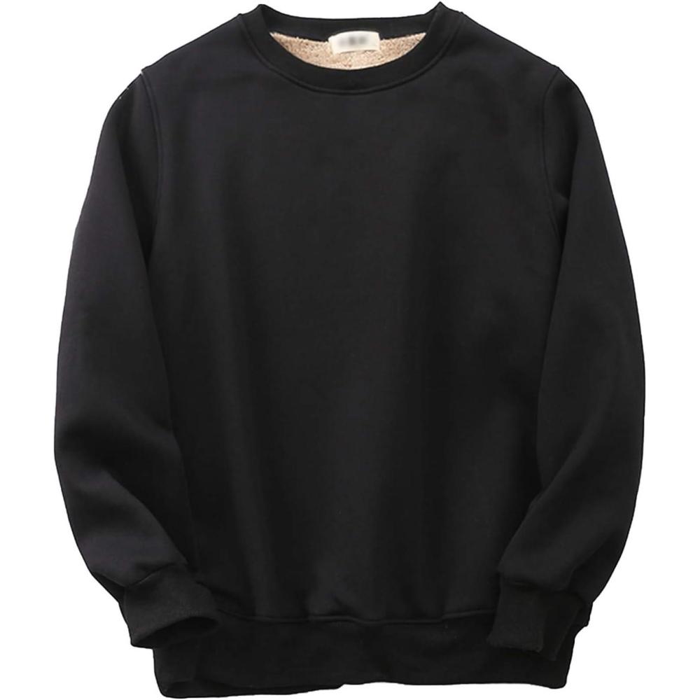 Flygo Men’s Warm Crewneck Fleece Sweatshirt Sherpa Lined Pullover Tops(Black)