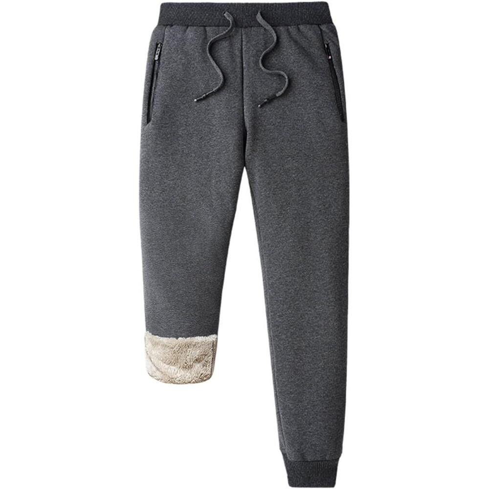 Flygo Men’s Warm Fleece Joggers Pants Workout Track Sherpa Lined Sweatpants(Dark Grey)