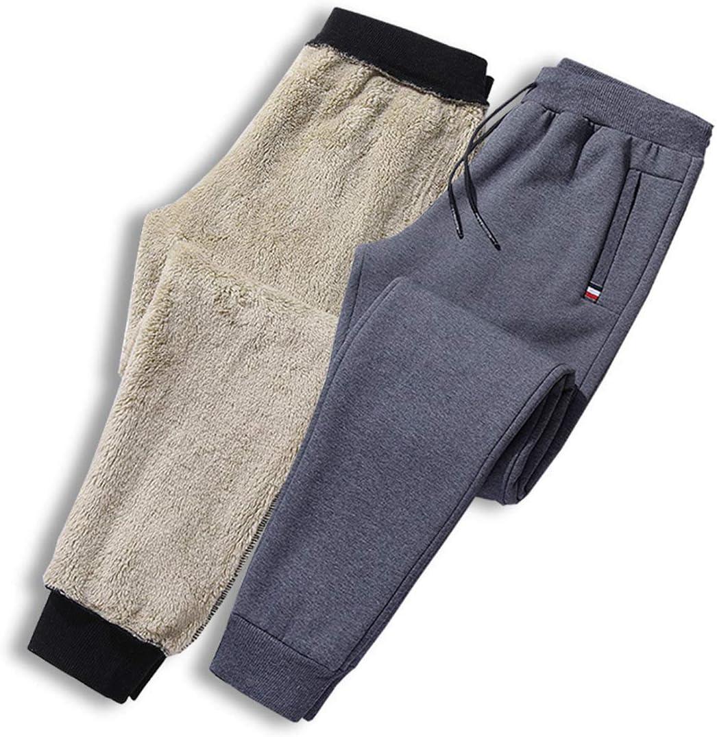 Flygo Men’s Warm Fleece Pants Sherpa Lined Active Running Camping Sweatpants(Dark Grey)